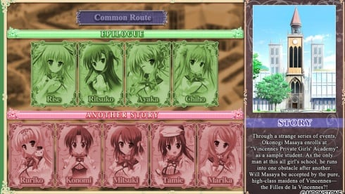В проект добавлена история с общим повествованием под названием "маршрут глава 1-13". Данный режим имеет множество кат-сцен и видеороликов, совмещенных вместе и создающий мини-сериал в аниме стиле. В сюжете пользователь узнает о примерном ученике Оконоги Масая, зачисляющаяся в Академию "Vincennes Private Girls". Будучи единственным мужчиной в учебном заведении, он столкнется со многими трудностями и высококлассными девицами Венсенна.