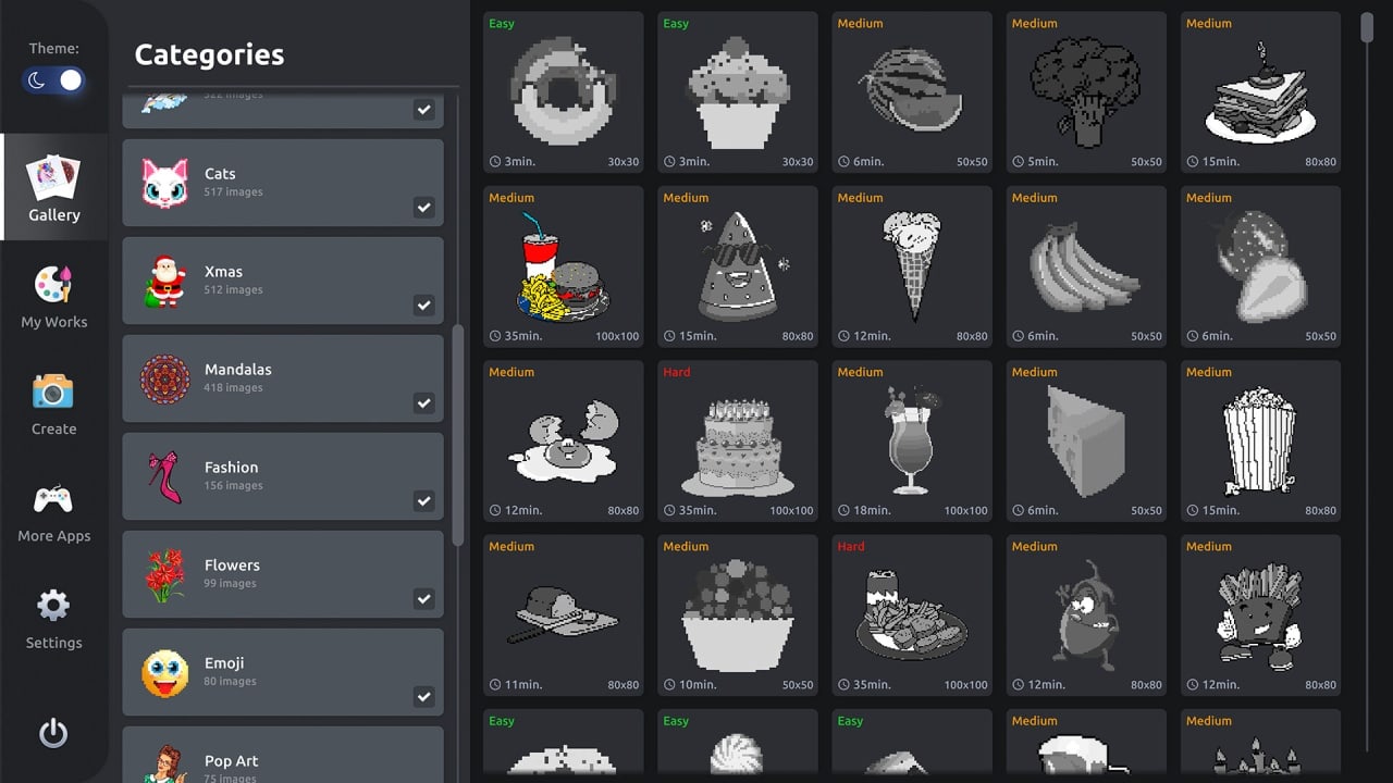 Pixel Art Coloring Book RUS v Free (Steam) Новая версия Полная версия Последняя Дата выхода 12 апр. 2021 Разработчик Peaksel Жанр Очень положительные на основе 437 обзоров в Steam 87% Обновлено 17 февраля 2025, 19:01 Список изменений Pixel Art Coloring Book - приложение для рисование, которым могут воспользоваться пользователи любого возраста. В игре отсутствуют ограничения, например, в виде запаса времени на уровень и так далее. Кроме того, к каждому заданию можно будет возвращаться в дальнейшем, чтобы доделать. Или же можно бросать рисунки не до конца выполненными, чтобы перейти к другим. Таким образом, наличие навыков обращения с компьютером или опыта в видеоиграх не является обязательным критерием. Рисовать тут можно с желаемой скоростью. Кроме того, присутствует несколько видов кистей, а также и другие дополнительные приспособления для раскрашивания области. Тематика представлена животными, едой и узорами, людьми и так далее. В Pixel Art Coloring Book можно выполнять всевозможные рисунки, следуя заданным алгоритмам. Можно будет заполнять картины при помощи заливки отдельных клеточек, каждая из которых обладает определенным номером. В зависимости от цифры, указанной в каждой клетке, можно выбирать соответствующий цвет. Общая палитра доступна в правой части экрана. Там же можно выбирать способ рисования. Так, например, можно заполнять каждую клетку отдельно, нажимая на них по очереди. Либо же можно воспользоваться усилителями, которые позволят добавлять цвета сразу в нескольких местах. Можно, например, за один клик заполнить все клетки одинакового цвета. Также можно взаимодействовать и с отдельными областями. Готовые изображения можно будет самостоятельно загрузить и преобразовать в нужный формат. Скачать торрент Скриншоты Показать больше Видео из игры Скачать БЕЗ торрента прямая ссылка через uTorria Альтернативные раздачи Прямые ссылки Облачные хранилища v Free (Steam) Показать Системные требования ОС: 7, 8, 10 Процессор: 2 GHz - Dual Core Оперативная память: 1 ГБ Видеокарта: 512 МБ Место на диске: 250 МБ Расслабляющая, Пиксельная графика, Казуальная, Point and click, Цветастая, Для всей семьи, Милая, Игры в 2D, Образование, Смешная