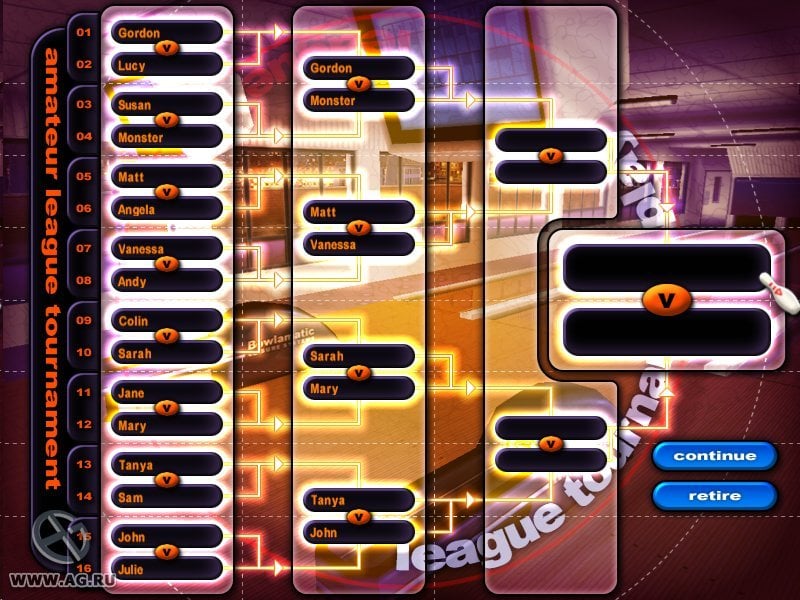 Friday Night Bowling RUS Полная версия Последняя Дата выхода 2003 Разработчик Virtual Playground Жанр Аркады Обновлено 27 мая 2025, 11:00 Список изменений В Friday Night Bowling у пользователя есть несколько персонажей на выбор. У каждого героя индивидуальная внешность, имя и характеристики. Нажав справа желтую иконку, внешние данные можно изменить. По желанию созданного человека можно удалить. Протагонист будет играть в боулинг. Его задача – поставить новый рекорд. У героев есть 4 показателя: самое большое количество набранных очков, средний результат, число побед и сколько матчей с ним было сыграно. Перед тем, как отправиться в клуб, можно выбрать вес шара. Управлять спортсменом в Friday Night Bowling не нужно, все действия девушка или парень выполняют автоматически. Перед тем, как бросить мяч, появляется схема площадки. Нижняя панель предназначена для выбора расположения человека. Средняя нужна, чтобы рассчитать правильную траекторию броска. В верхней указано, какие кегли еще стоят и где. Когда конфигурация ног и траектории выбрана, необходимо определить силу броска. Шкала быстро увеличивается и уменьшается, важно подобрать подходящий момент и кликнуть. Проводит время протагонист в боулинг-клубе с друзьями. Противниками управляет искусственный интеллект. Доступен локальный кооперативный режим для 2 игроков. В одиночном режиме соревнуются 3 человека. После удара следует анимация. Если человек доволен результатом или был выбит страйк, он начинает прыгать и танцевать. Скачать торрент Скриншоты Скачать Friday Night Bowling Тип релиза Лицензия (Таблетка: Не требуется) Версия (Полная) Последняя Размер 328.5 МБ Интерфейс Русский Озвучка Русская Установка: Скачать .torrent торрент файл Скачать БЕЗ торрента прямая ссылка через uTorria Системные требования ОС: 98SE/Me/2000/XP Процессор: Pentium II 500 МГц Оперативная память: 64 МБ Видеокарта: 32 МБ Место на диске: 320 МБ Спортивные, Классика, Для всей семьи, Ретро, Олдскул