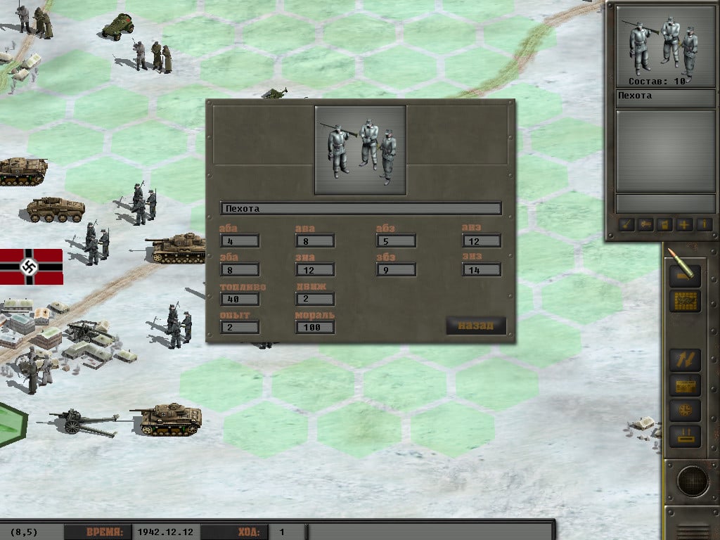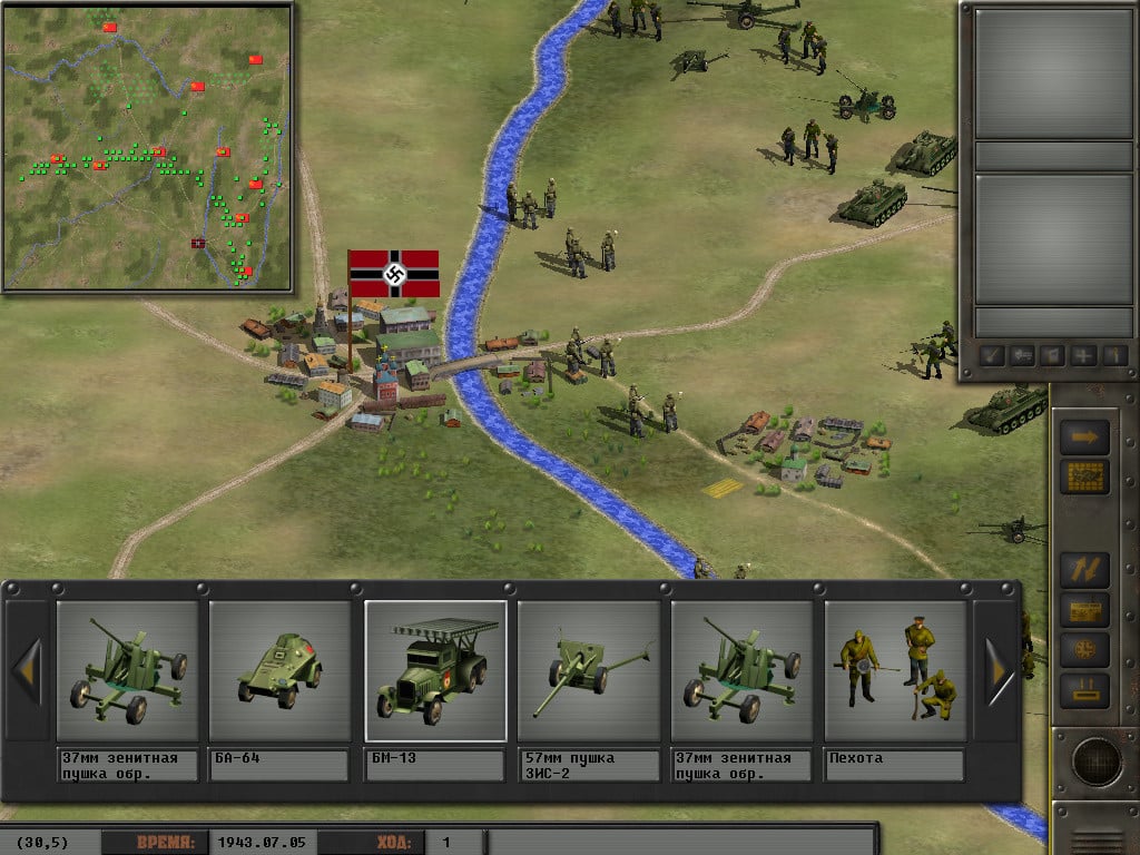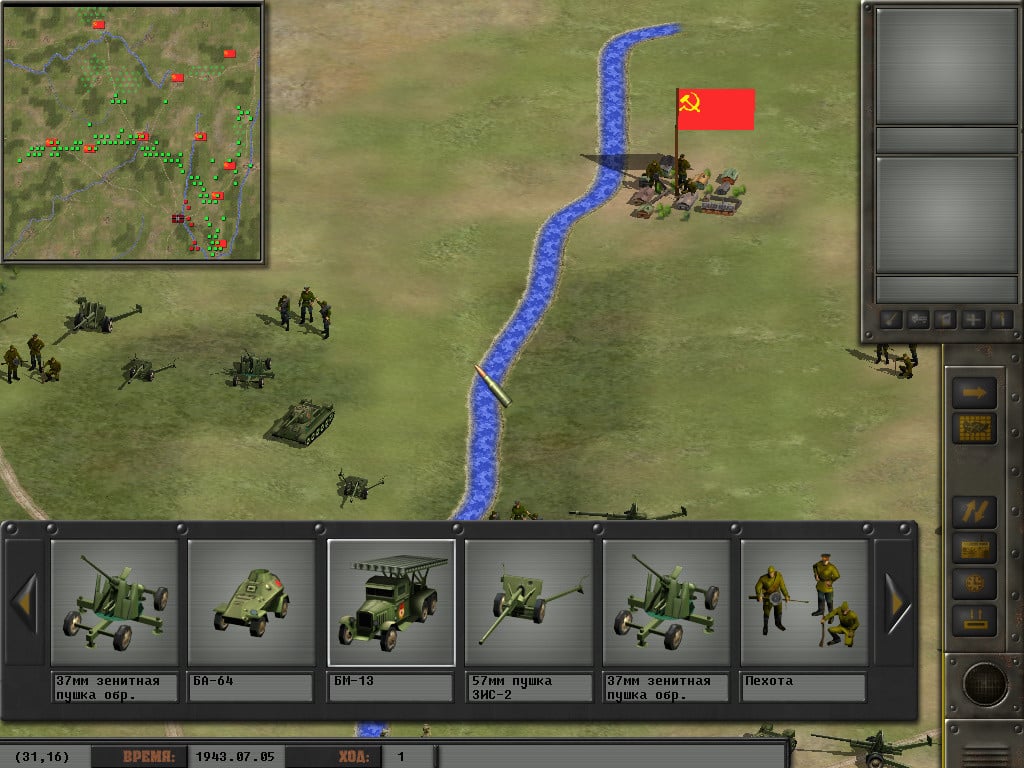Русский фронт 2 RUS Полная версия Последняя Дата выхода 2005 Разработчик Электроникум+ Жанр Стратегии Обновлено 26 января 2025, 11:13 Список изменений В Русский фронт 2 история разворачивается на территории Европы в разгар Второй Мировой войны. Игрок может выбрать, за кого воевать – Советский Союз или Нацистскую Германию. Протагонист командует юнитами войск. В начале он получает сумму средств и распределяет ее на покупку военной техники, наем военнослужащих. Арсенал зависит от выбранной стороны. У СССР есть РСЗО, Т-40, Т-50, Т-34, артиллерийские орудия. Приобрести можно и авиацию (МиГ-3, Як-1, Ил-4 и другие). Сражения в Русский фронт 2 имеют много чего общего с исторической реальностью. Бои проходят в реальных городах на территории Советского Союза. Если они состоялись зимой, местность становится заснеженной. Карта состоит из деревьев, тропинок, рек, земляного и травяного ландшафта, поселений. Над каждым поселением есть флаг – СССР или Третий Рейх. В верхнем левом углу можно рассмотреть карту полностью. Там указано местоположение всех населенных пунктов и под чьим контролем они находятся, расположение всех советских юнитов. Армия противника не видна игроку, если юнит не находится в непосредственной близости. Выяснить, где находятся враги, можно только с помощью истребителей и разведчиков. Бомбардировщики могут с воздуха уничтожить соперников. В нижней части экрана есть панель с датой, временем и количеством ходов. 1 отряд пехоты состоит из 3 военнослужащих. Есть возможность докупить подмогу по ходу операции. Скачать торрент Скриншоты Скачать Русский фронт 2 Тип релиза Лицензия (Таблетка: Эмуляция образа) Версия (Полная) Последняя Размер 705.2 МБ Интерфейс Русский Озвучка Отсутствует Порядок установки: Скачать .torrent торрент файл Скачать БЕЗ торрента прямая ссылка через uTorria Системные требования ОС: 98, Me, 2000, XP Процессор: Intel Pentium II 400 МГц; Оперативная память: 64 МБ Видеокарта: DirectX 8.1 Место на диске: 300 МБ Классика, Война, Насилие, Вторая мировая война, Кровь, Изометрия, Ретро, Олдскул