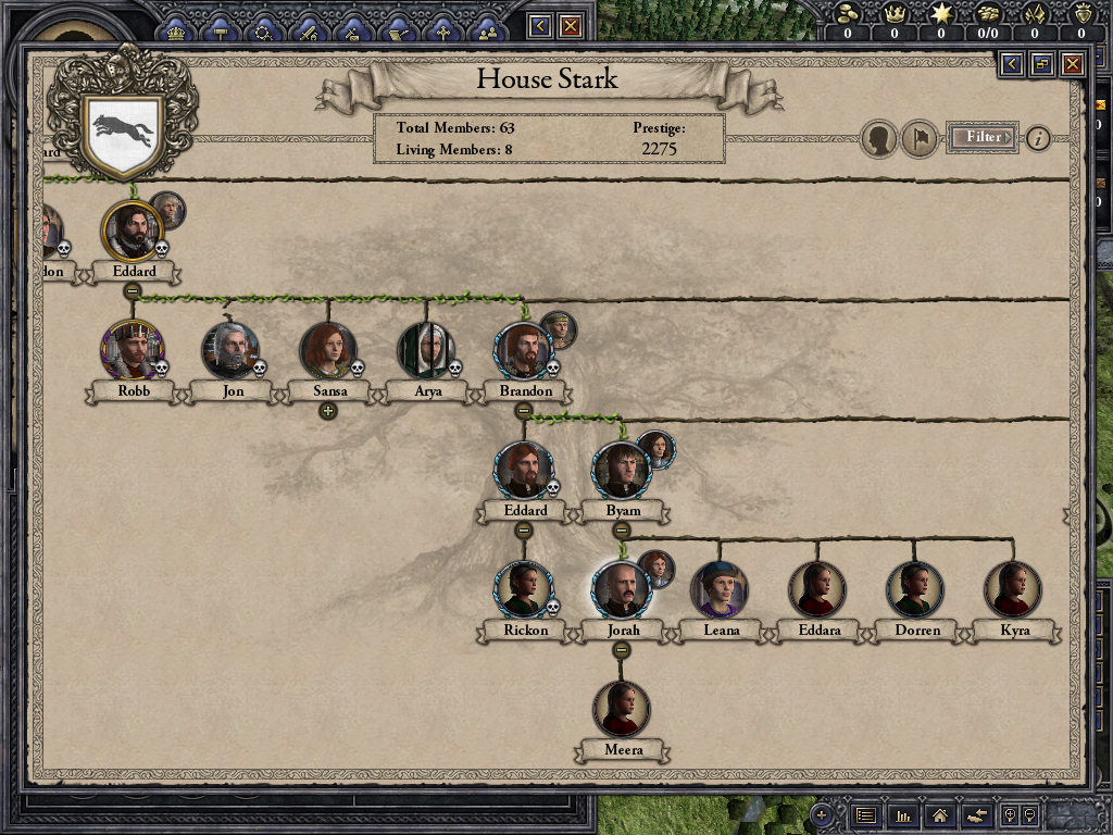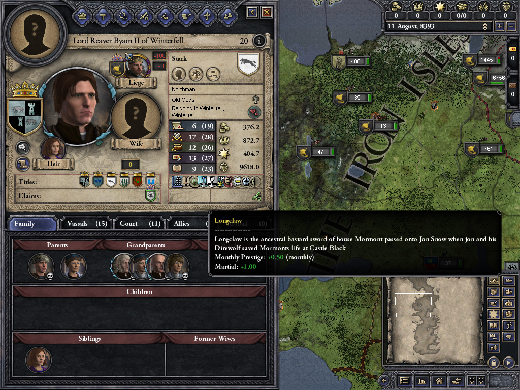 Модификация названа в честь первой части книги серии, полностью переделывает внутриигровую политику и экономику. Игрокам предстоит выбор любой исторической эпохи, начиная с Завоевания Эйгона. Дополнение вместо линейного развития событий – завоеваний областей других владык, предлагает разделение крупного королевства на несколько мелких. Но на практике это происходит крайне редко так, как правители мечтают обрести Железный трон, выкованный самим Эйгоном I Таргариеном почти за 300 лет до события саги.Новое в Crusader Kings 2: A Game of Thrones: