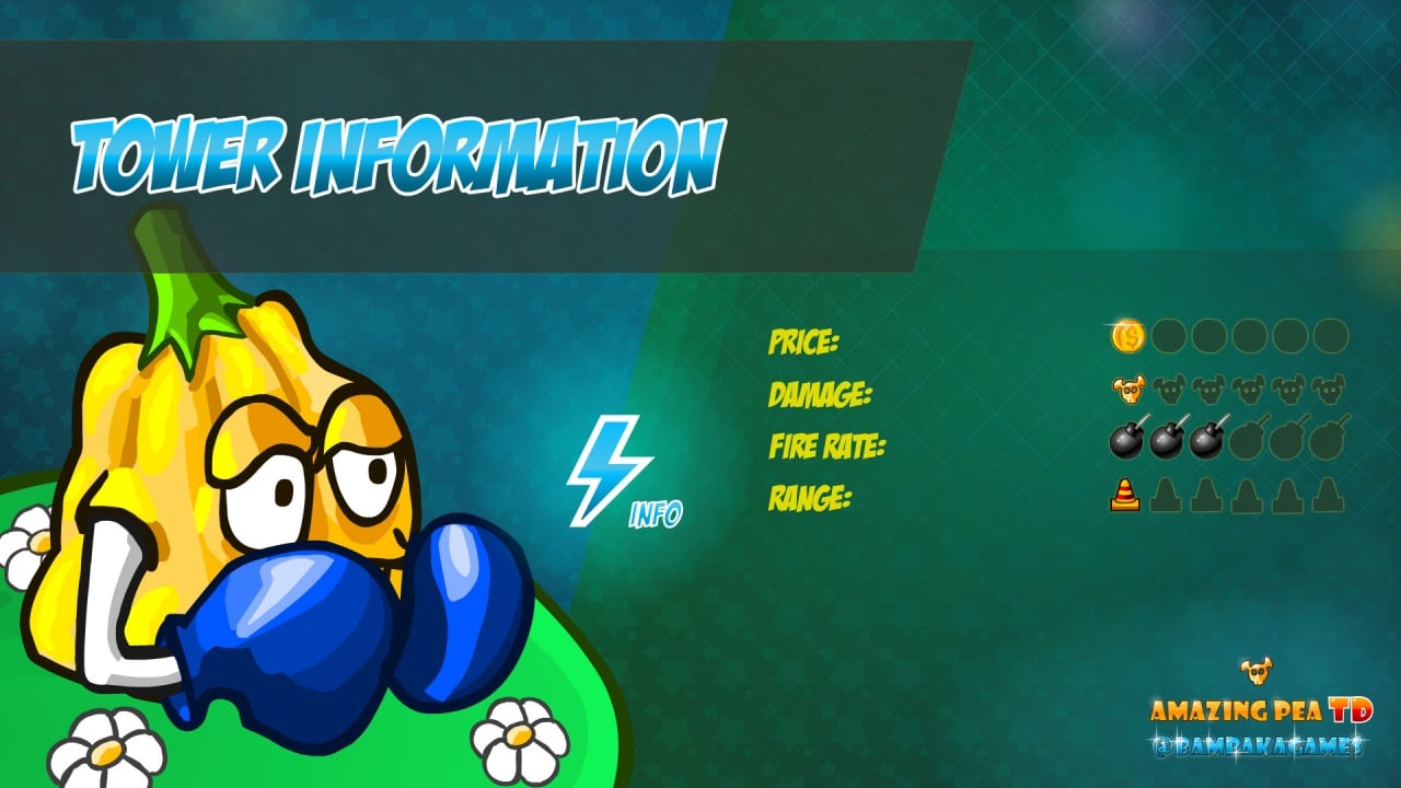 Amazing Pea TD RUS Дата выхода Скоро выйдет Разработчик Bambakagames Жанр Стратегии, Инди, Экшены, Выживание Торрент ожидается Добавьте в избранное, чтобы следить Amazing Pea TD – это отличная семейная игра в форме тауэр дефенс, где пользователю предстоит встать на сторону живых овощей и фруктов. Она в меру сложная и хорошо подойдет для развития логики и стратегического мышления у детей. В нее можно играть даже всем вместе по вечерам, чтобы отлично провести общее время и немного расслабиться, помогая друг другу найти оптимальное решение.Действия происходят на далекой планете, которую населяют живые растения. Неожиданно на них нападают инопланетяне, которые прибывают с голодающей системы, не пригодной для земледелия. Только они совершенно не ожидали, что местное население вполне разумное и уже навострило свое оружие, готовясь защищаться. Кроме того, у них есть некоторые стихийные способности, связанные с их свойствами по степени жгучести или твердости, и они активно будут задействовать их для победы и защиты мирных граждан.Башни Эмейзинг Пеа ТД: Боксер – мощная тыква с ударами на ближней дистанции и большим уроном Маг – сумасшедшая клубничка, которая использует особые заклинания похожие на молнии Камнемет – свекла, которая бросается тяжелыми валунами во всех противников Чили – острый перчик, который может легко поджечь любого инопланетянина Морозильник – затормаживает идущую армию, окутывая ее в глыбы льда Самое главное, не дать ни одному противнику приблизиться к королю этого мира и обеспечить его безопасность. Комбинируя и постепенно улучшая своих бойцов, игроку стоит быть готовым к тому, что и вражеская сторона будет улучшаться. Некоторые из боссов имеют довольно большое количество здоровья и придется приложить все свои тактические умения, чтобы победить. Скачать торрент Скриншоты Показать больше Видео из игры Скачать БЕЗ торрента прямая ссылка через uTorria Системные требования ОС: XP / Vista/ 7 / 8 / 10 Процессор: 1 GHz Оперативная память: 1 ГБ Место на диске: 50 МБ Tower Defense, Игры в 2D, Мультипликация, Инопланетяне, Для всей семьи, Рисованная графика, Казуальная, Цветастая, Смешная, Сложная, От третьего лица, Тактика, Юмор, Милая, Мультфильмы