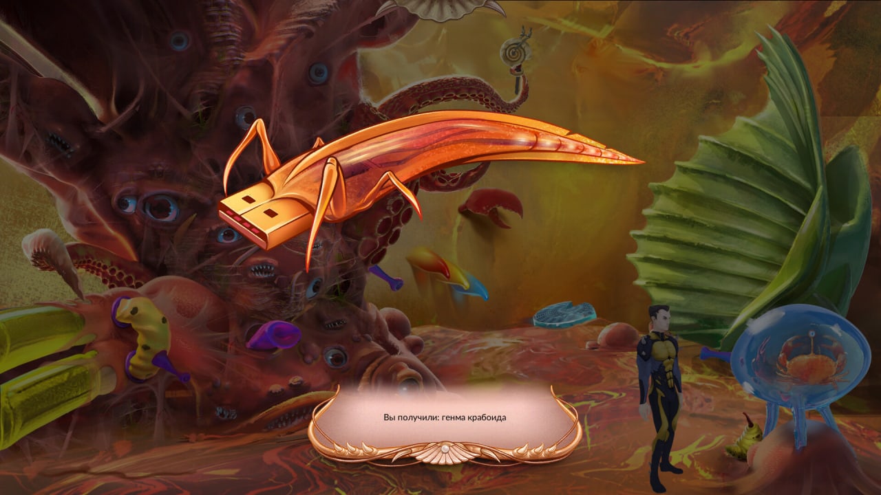 Exit: A Biodelic Adventure RUS Дата выхода 1 мар. 2024 Разработчик neurosaur Жанр Приключения, Инди Очень положительные на основе 52 обзоров в Steam 90% Торрент ожидается Добавьте в избранное, чтобы следить Exit: A Biodelic Adventure – это представитель жанра point-and-click adventure. Его графика сочетает в себе 2D и 3D. На фоне других подобных игр проект выделяется своим антуражем. Инди-проект выполнен в сеттинге биопанка, что редко встречается в квестах. Действие видеоигры "Выход: Биоделическое приключение" происходит в далеком будущем. Человечество хорошо освоило имплантацию органов и научилось вживлять в мозг нейронные сети. После технологического прорыва генетические замки, ДНК-ключи, биофлешки, живые компьютеры и другие вещи оказались в итоге обычным явлением. Предметы перестали производиться на заводах. Вместо этого их начали рожать животные-фабрики. Все шло неплохо, пока обучившиеся нейросети не взбунтовались и не принялись подчинять себе людей. Это событие получило название эпидемия Червя. Населенные пункты с полностью порабощенным населением стали именоваться червивыми городами. История рассказывает о страдающем от биогаллюцинаций мужчине, которого заперли с подводным ихтиосервером. Благодаря технологиям он может изменять и отделять свои конечности, а также исследовать свое собственное тело. Перемещение, взаимодействие с окружением, общение с персонажами и другие активности осуществляются при помощи мышки. У протагониста есть при себе инвентарь. Чтобы его вызвать, надо поднести курсор к верхнему краю экрана. Скачать торрент Скриншоты Показать больше Видео из игры Скачать БЕЗ торрента прямая ссылка через uTorria Системные требования ОС: 7, 8, 10 Процессор: Pentium 4+ Оперативная память: 500 МБ Головоломка, Point and click, Игры в 2D, От третьего лица, Глубокий сюжет, Сюрреалистичная, Киберпанк, Научная фантастика, Психоделия, Повествовательная, Олдскул, Тайна, Будущее, Смешная, Юмор