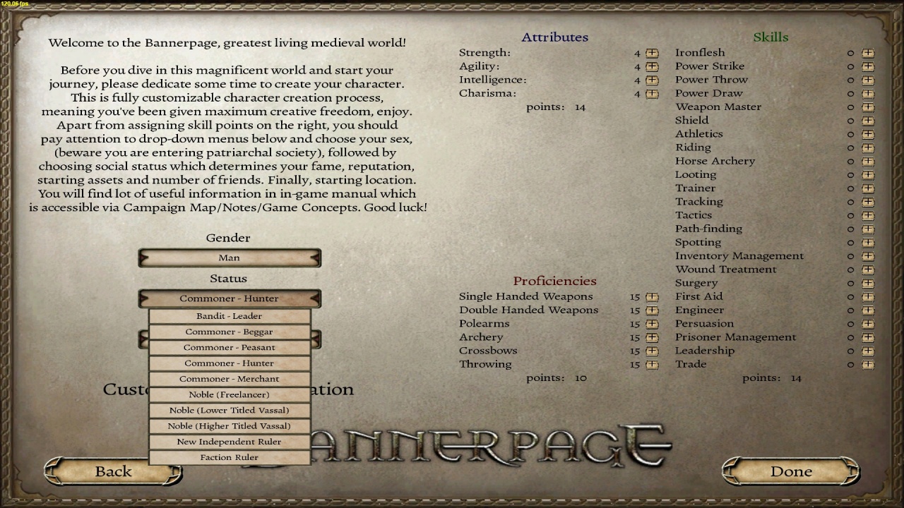 Мод BannerPage для игры Mount & Blade: Warband добавляет в гибрид песочницы, стратегии, экшена и RPG множество возможностей. Мод позволяет начинать игру нищим попрошайкой, простым крестьянином, главарем бандитов, лидером восстания, независимым правителем и даже главой большой политической фракции. Появились дополнительные способы развлечь себя в открытом мире. На арене Ludus Calradius можно наблюдать за сражениями гладиаторов и делать ставки или самому принять участие в поединках.