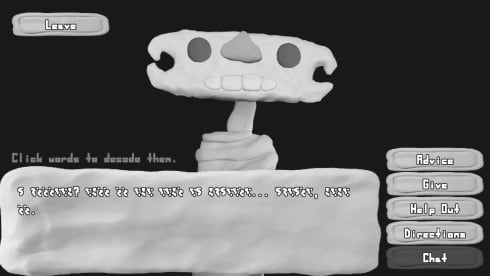 Особенность визуального стиля Somewhere in a Clay Nowhere заключается в том, что все объекты и окружающая среда сделаны из глины. Сами локации, как и персонажи на них, сделаны в черно-белой цветовой гамме, что также меняет восприятие. В зависимости от того, в каком направлении двигается герой, мир сам видоизменяется, открывая новые фрагменты и уводя в тень уже пройденные места. Даже несмотря на то, что мир не очень велик, его детализация находится на высоком уровне, и по ходу прохождения можно рассмотреть множество сторонних объектов и отметить что-то для себя. У каждого персонажа, с которым встретится главный герой, своя манера общения, которая дополняется совершенно новым языком. Изучать его придется на ходу, высматривая закономерности в ответах. Вариантов для ведения диалога, кстати, несколько, и на каждую реплику можно использовать одну из доступных фраз. Не обошлось и без взаимодействия с предметами. Так, для каждой вещи, которая представляет ценность для героя, имеется своя механика, и к этому также придется приспособиться.