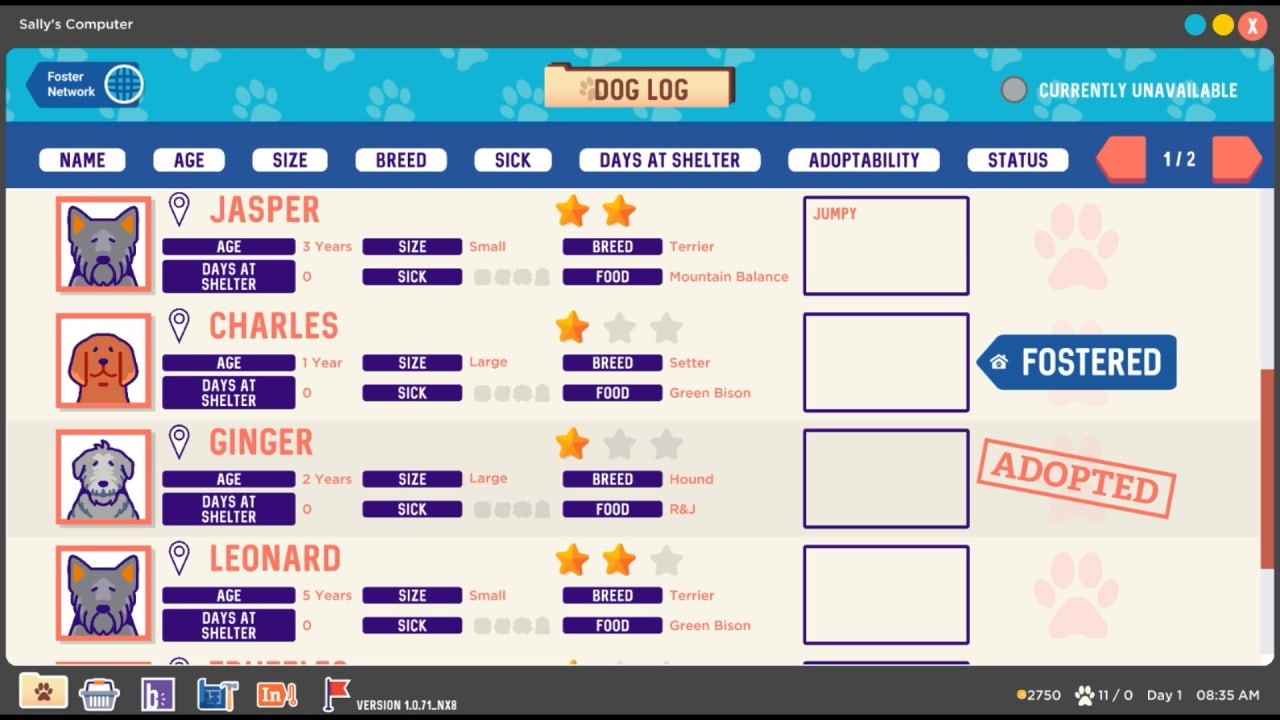 Каждое животное - личность, и обладает своими характеристиками, характером, предпочтениями, и поэтому игроку стоит подбирать индивидуальный подход ко всем местным обитателям. В симуляторе приюта для собак на пользователя возлагается ответственность в виде дюжины животных, каждое из которых нуждается в доме. Важно заняться прокачкой приюта, чтобы сделать его максимально комфортным и работоспособным. Здесь необходимо удовлетворять все потребности четырелапого друга, чтобы повысить шансы на поиск нового жилья. Ежедневно юзер сталкивается с новыми вызовами, за прохождение которых получает разнотипные награды для облегчения прохождения. Собачки обладают собственными предпочтениями, способны заразить героя инфекционными болезнями и иметь негативные черты характера, что особенно стоит учитывать при подборе для них новой семьи.