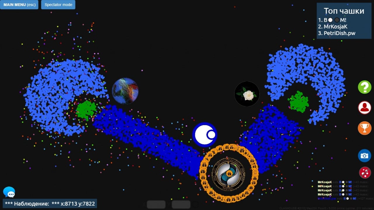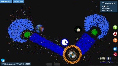 PetriDish.pw RUS v Free (Steam) Новая версия Полная версия Последняя Дата выхода Скоро выйдет Разработчик Petri Devs Жанр Инди Обновлено 19 февраля 2025, 16:10 Список изменений В PetriDish.pw игрок проводит пассаж клеток на питательные среды, выращивает их и наблюдает за развитием организмов. Основная цель - поглотить как можно больше живительных веществ или других героев и оказаться на вершине турнирной таблицы. В различных режимах вариации правил немного изменяются. Можно создать своего персонажа, присвоив ему имя и аватар. Все матчи происходят на серверах, что дают разное преимущество, месторасположения (Европа, Сибирь), обширность местности, и количество очков выдаваемых одной порцией еды. Некоторые режимы и механики встречающиеся в Чашке Петри: FIFA - поедание корма и юнитов других геймеров, достигая безграничного роста, что заканчивается при достижении 22500 единиц. Зеленые вирусы разбивают протагониста на мелкие частицы. Здесь содержится больше всего серверов, что могут насчитывать от 300 до 700 слотов. Fastfood– живительные вещества очень большие, отдающие по пять пунктов за один раз. Все представленные карты огромны, как и размеры чаш, баталии более динамичные и насыщенные. Team – ведется борьба между тремя командами. Разрешается перед вылазкой выбрать свой цвет. Experimental – появляются красные вирусы-кормушки, а обычных зелёных можно расталкивать и стрелять в них массой. Arena – каждый сам за себя и имеет лишь одну жизнь. Если проиграл, придется ожидать конца раунда, чтобы вновь отправиться в бой. Если не набирается должная численность игроков, то добавляются агрессивно настроенные боты. Fatboy Arena – всего до 6 учащихся, начинающие с массой 1004 баллов. Скачать торрент Скриншоты Показать больше Видео из игры Скачать БЕЗ торрента прямая ссылка через uTorria Альтернативные раздачи Прямые ссылки Облачные хранилища v Free (Steam) Показать Системные требования ОС: XP / Vista / 7 Процессор: pentium 4 Оперативная память: 512 МБ Место на диске: 25 МБ Казуальная