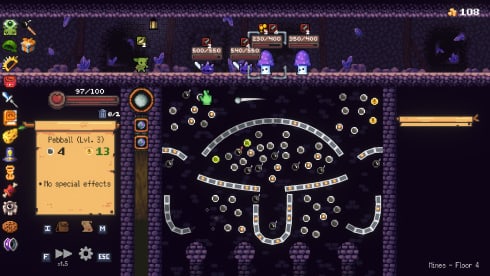 Peglin – ролевое приключение с боковой прокруткой и двумерным миром. Игрок побывает в роли вымышленного существа пеглина, пытающегося сражаться с драконами, крадущими и лопающими представителей его расы. Главный герой – небольшое зеленое существо с большими ушами. Он решил отправиться в лес, где обитают давние враги фракции. Там он встретится с врагами и отберет то, что было украдено драконами.