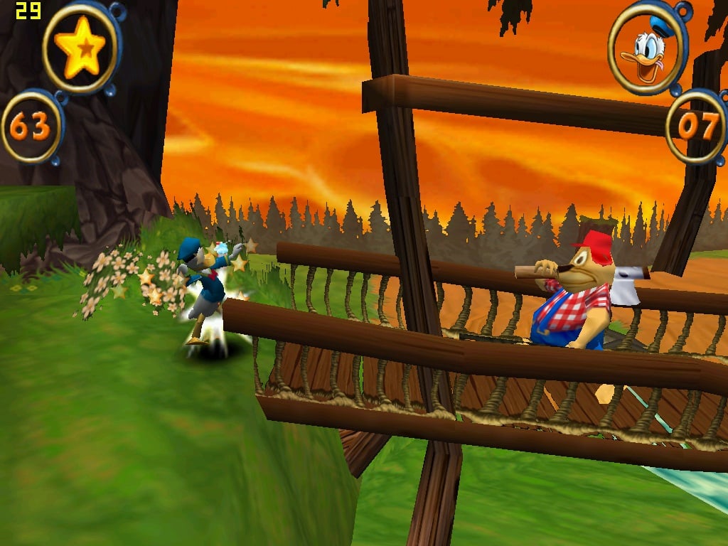Disney's Donald Duck: Goin' Quackers - трехмерная аркада, основанная на истории Дональда Дака - персонажа мультипликационных фильмов Дисней. Представлено 4 уникальных уровня, объединенных 24 уровнями. В каждом мире предстоит встретиться с разными героями любимых мультфильмов. Игровой процесс простой и казуальный, позволяющий освоить механики даже маленьким детям.