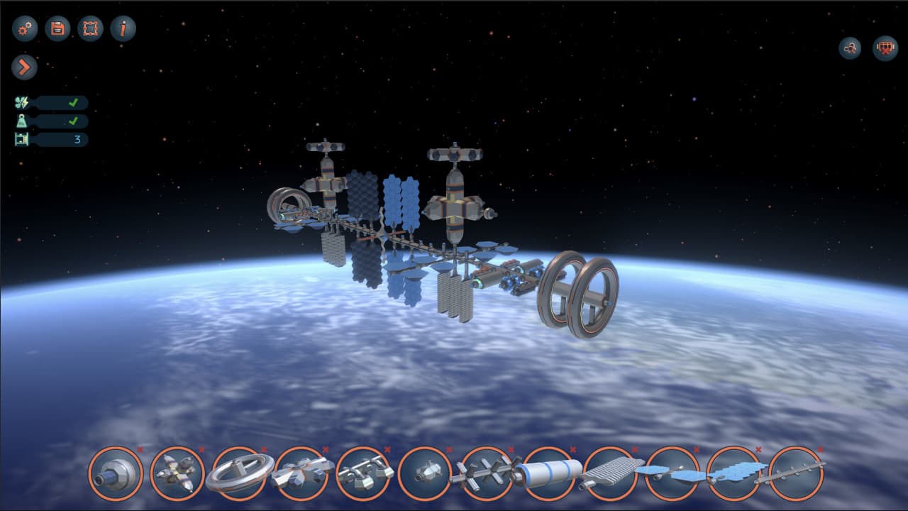 Геймплей Space Station Designer сфокусирован на строительстве и управлении. Игрок становится руководителем и отвечающим за расширение орбитальных станций вокруг Земли и Луны. Для управления представлен обширный набор действий, позволяющих набирать космонавтов и контролировать их, создавать и устанавливать модули, предлагать коммерческие услуги, производить и применять промышленные технологии.