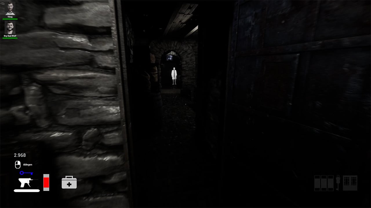 Противник издает множество шума, а также его можно заметить по тени, отбрасывающийся на стенах за углами. Это позволит вовремя среагировать и спрятаться от него. Монстр применяет посторонние звуки или громкие действия со стороны выживших, чтобы обнаружить добычу. В определенной комнате находится аптечка, помогающая исцелить раны и воспользоваться вторым шансом после ловли.