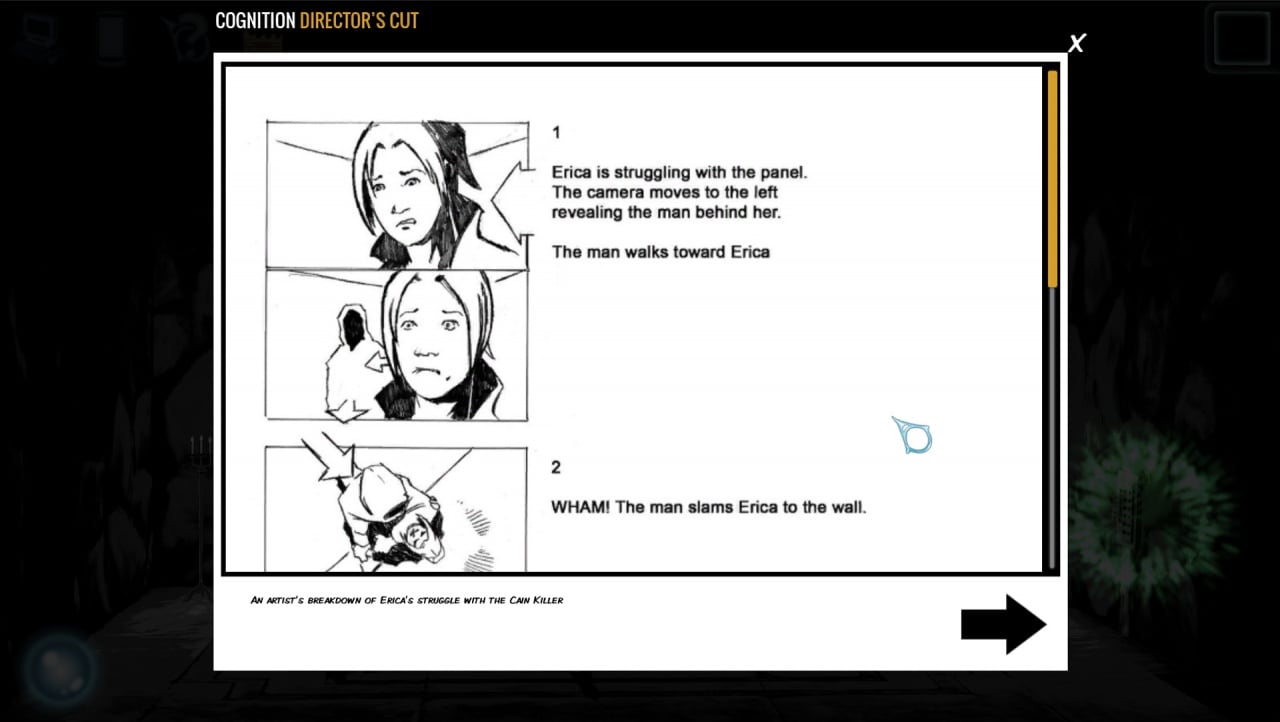 Сюжет Cognition: An Erica Reed Thriller развивается после несчастного инцидента в жизни девушки. Даже её уникальный дар не смог помочь спасти брата от серийного убийцы. После того как спустя несколько лет, официальное расследование закончилось, Эрика решила взять расследование в свои руки.В ходе игры вам предстоит пройти 4 акта. В каждом из которых главной героине придется встретиться лицом к лицу с демонами своего прошлого. Серийный убийца её брата до сих пор не найден. А на просторах Бостона кто-то оставляет подсказки, которые способна собрать воедино лишь наша подопечная. Эпизоды геймлейной истории Эрики Рид: