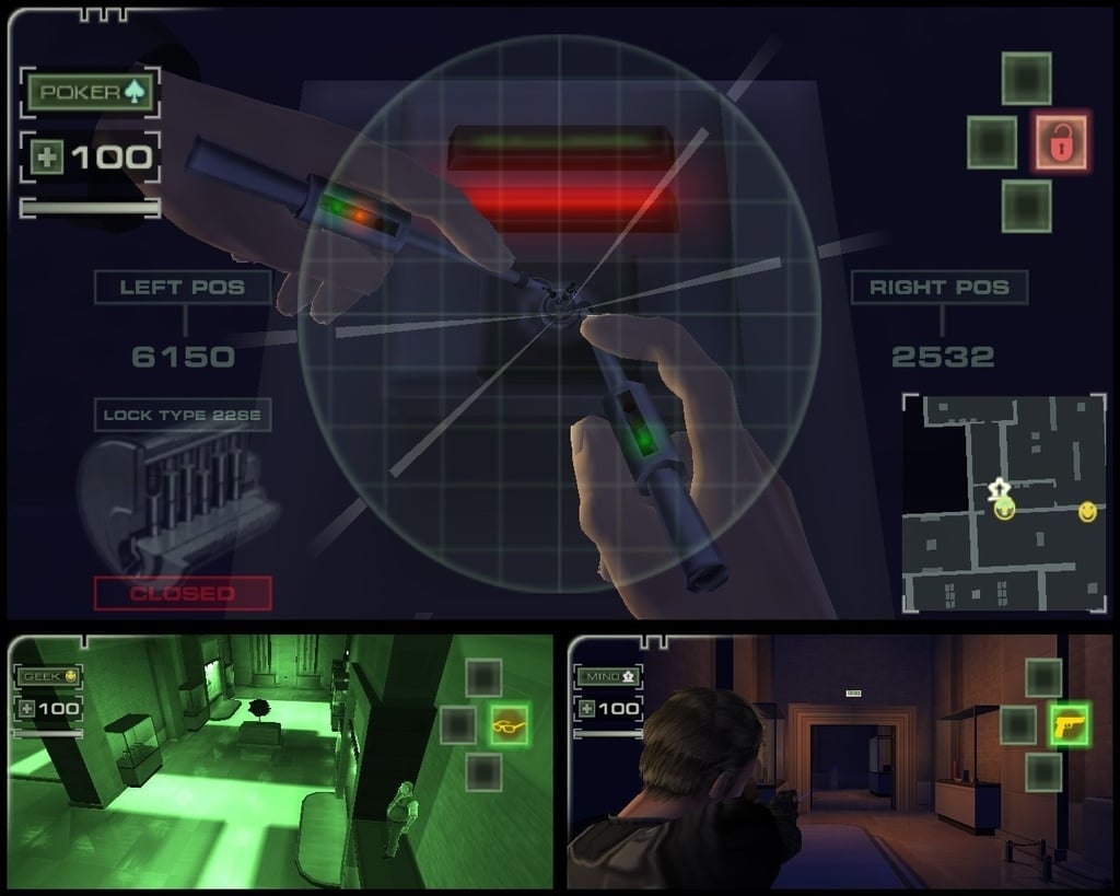 Что касается непосредственно активностей по ходу игры, то их более чем достаточно. Это и взлом охранной системы подбор кодов к электронным замкам и прочие интерактивные сегменты. Благодаря мини-карте, расположенной в левом углу экрана, будет гораздо проще следить за обстановкой на локации и не терять из виду противников. Также, если на локации есть сразу несколько способов проникнуть на ключевую точку, они все будут показаны на карте.