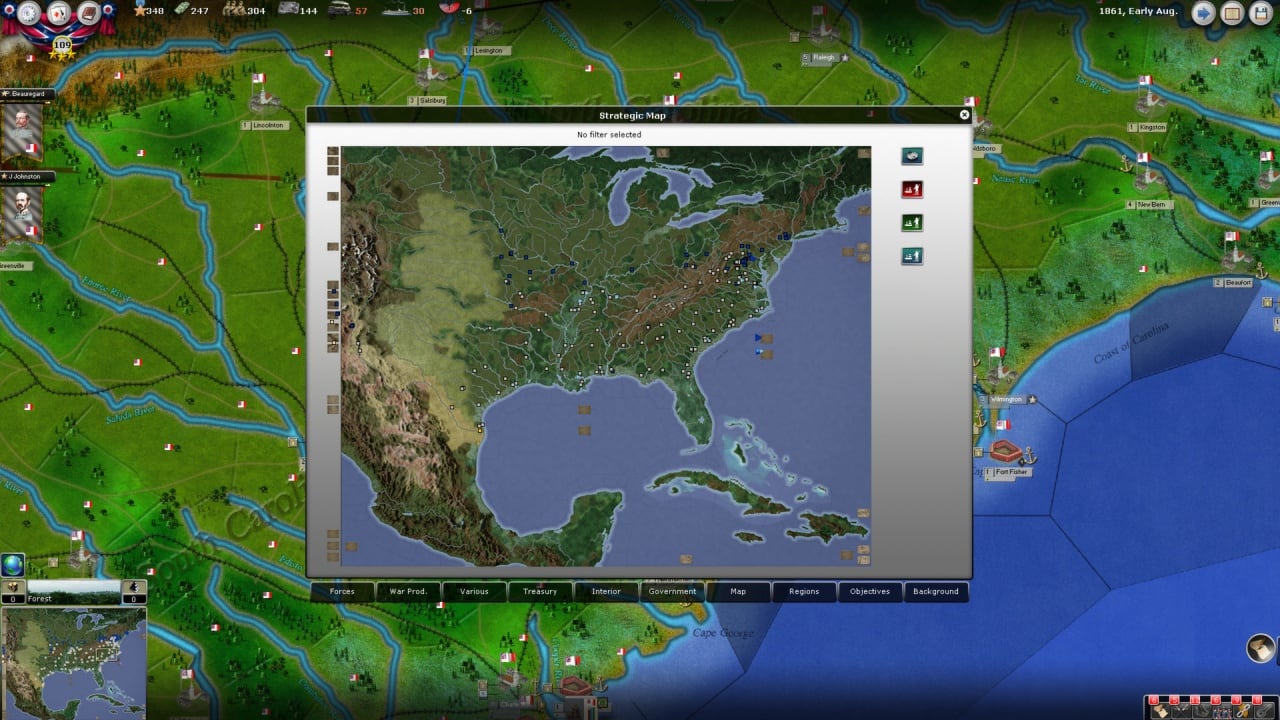 В этой игре каждый ход длится две недели. Команды выполняются поэтапно. На одну фазу уходит 1 день, и в итоге получается 14 суток. Поэтому перед раздачей приказов необходимо просчитывать наперед, где будет находиться противник. При этом нужно не только отправлять силы на штурм вражеской позиции, но также позаботиться о снабжении и распланировать саму атаку. В инди-проекте более 1000 юнитов, включая артиллеристов, кавалеристов, снайперов. Их можно объединять в бригады, дивизии, корпуса и армии. Схватки проходят не только на суше, но и на море. Разнообразия геймплею добавляет система карточек. Они активируют различные события. Например: внезапное нападение индейцев.
