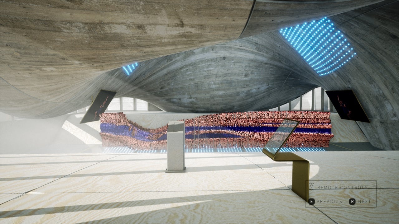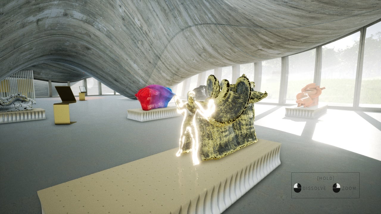 Геймер может добраться до золотой книги, если свернет налево после входа в здание. На стендах отображаются произведения искусства, взятые у природы, как капли воды, огонь и другое. Представлено искусство Тетриса и танцор в движении, попадающийся после первой части выставки. Юзер способен приблизить камеру, чтобы тщательнее осмотреть необычный объект, увидеть его особенности или выполняемые функции.