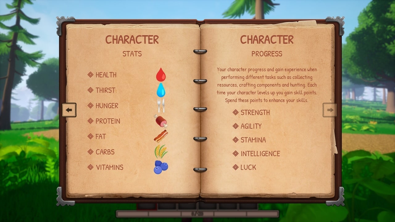 Интерфейс отображает базовые потребности подопечного, быстрый доступ к 6 предметам и другие показатели. Юзер может посмотреть текущую энергию, необходимость в пище или воде. Также показывается энергия, здоровье и опыт до следующего уровня. Система строительства позволяет сооружать деревянные, каменные или кирпичные дома. Добавлены заборы, ловушки, стены и другие объекты, требуемые для защиты важных веществ, не являющихся основным домов.