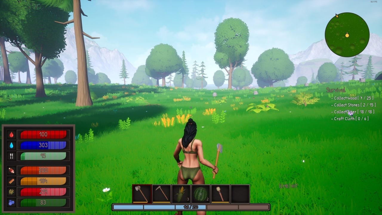 Пользователь может свободно изучать континент и находить спрятанные сокровища. В разных локациях и биомах обитают отличающиеся дикие животные. Персонаж убивает их, получая еду и другую добычу. Вокруг могут быть другие враги, готовые напасть на геймера и быстро убить его. Для поддержки жизни, требуется пользоваться пищей. Еда выращивается при помощи найденных растений и урожая. Наблюдение происходит от третьего лица.