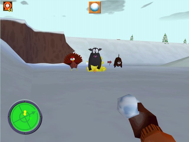 Каждый игровой сегмент в проекте "Южный Парк" сопровождается видео-вставкой, после чего можно сразу переходить к активным действиям. В качестве снарядов для нанесения урона врагам используются снежки в неограниченном количестве. Их можно метать не переставая, чтобы отбиваться от очередного набега противников. Благодаря значительным размерам локаций, у геймеров есть возможность маневрировать между объектами и заводить врагов в неудобные места, чтобы с ними было легче справиться. Кроме того, все враждебные юниты отображаются на радаре, и об их приближении будет известно заранее. Помимо стандартных типов врагов, здесь могут появляться и более выносливые образцы (например, гигантский индюк-мутант). Он значительно превосходит прочих героев по стойкости, поэтому с ним придется разбираться гораздо дольше. В некоторых моментах игры включается музыкальное сопровождение, но это происходит лишь эпизодически. Поэтому не будет ничего удивительного в том, что часть уровней пройдет лишь под звуки метания снежков и характерных возгласов от врагов.