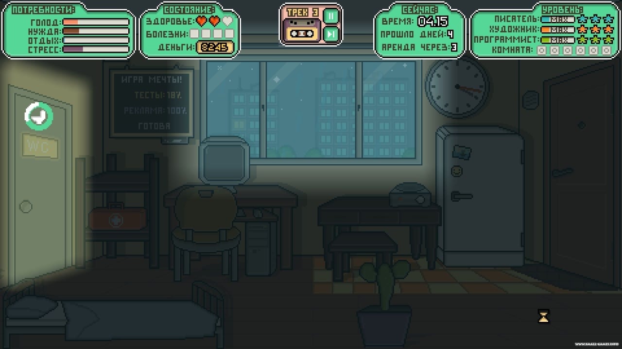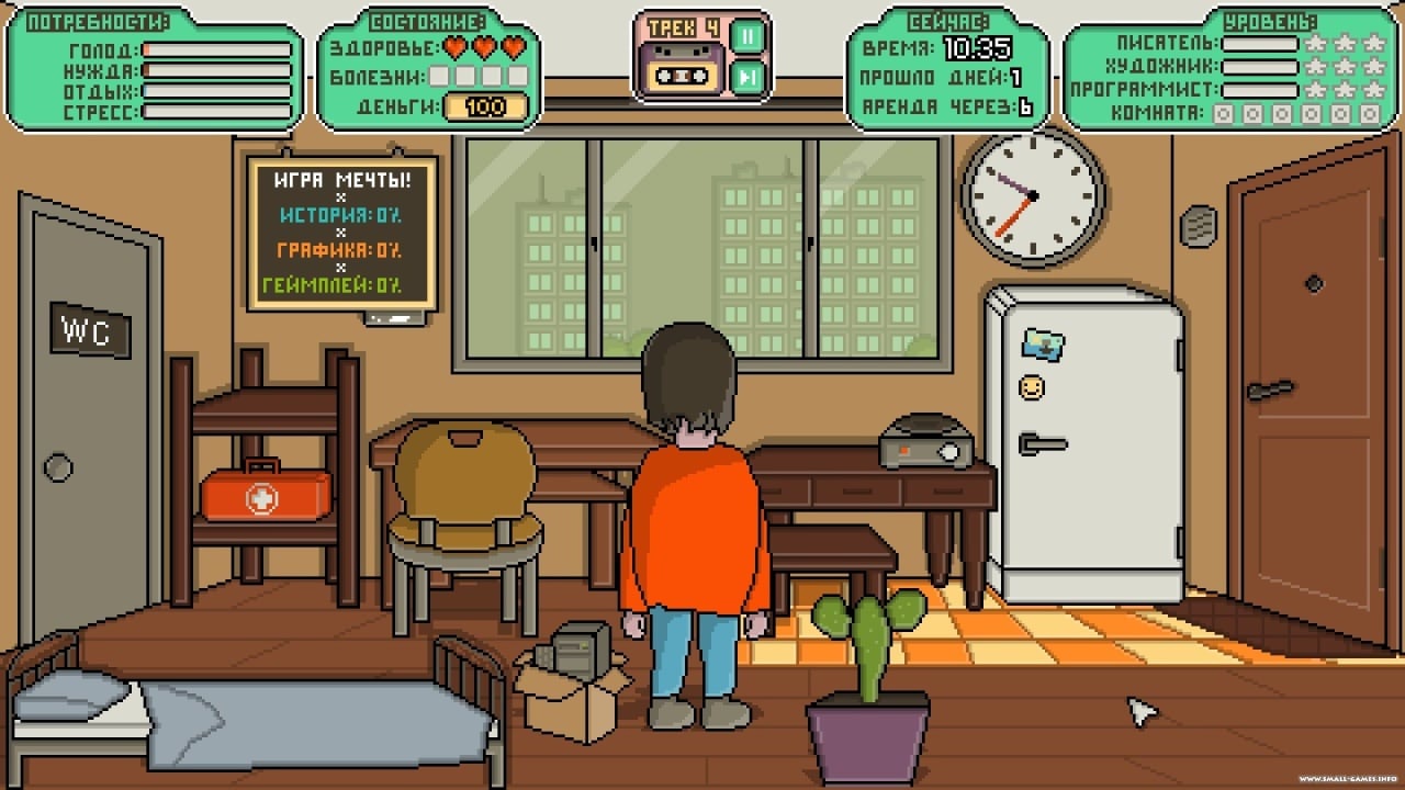 Untitled Dream RUS v 1.06 Новая версия Полная версия Последняя Дата выхода 2021 Разработчик Untitled Magic Studio Жанр Инди, Симуляторы Обновлено 24 марта 2025, 23:43 Список изменений Untitled Dream – это игра, в которой игроку предстоит ощутить себя настоящим разработчиком видеоигр. Перед протагонистом стоит простая цель – создать лучшую компьютерную бродилку всех времен и народов. Он ни на минуту не отвлекается от процесса и даже не выходит на улицу, живя своим стремлением создать шедевр. Все, что нужно заказывается онлайн, выходить за пределы жилища не обязательно, а действие происходит только на одной локации – в его собственной комнате. Игроку Untitled Dream предстоит пережить всю рутину своего главного героя и помогать ему хоть изредка вставать из-за компьютера, одновременно, непосредственно участвуя в разработке проекта. Задача – вовремя кормить, забирать интернет-заказы, открывая дверь квартиры, зарабатывать деньги в интернете, не вставая из-за компьютера и отправлять спать своего персонажа. Одна из загвоздок заключается у хозяйки квартиры, с которой иногда придется общаться, тоже не выходя из дома. В процессе прохождения игры, герой будет сталкиваться с различными препятствиями, которые будут мешать ему разрабатывать игру своей мечты. Например, у парня бывают нервные срывы, с которыми потребуется справляться. А еще, в результате постоянного употребления фаст-фуда, протагонист будет страдать от отравлений. Единственный, кто может помочь справиться с этими напастями – это игрок по ту сторону экрана. Скачать торрент Скриншоты Видео из игры Скачать Untitled Dream Тип релиза Пиратка (Таблетка: Не требуется) Версия v 1.06 (Полная) Последняя Размер 43.20 МБ Интерфейс Русский Озвучка Отсутствует Скачать .torrent торрент файл Скачать БЕЗ торрента прямая ссылка через uTorria Системные требования ОС: Windows 7, 8, 10 Процессор: Dual Core 2.0 GHz Оперативная память: 2 ГБ Видеокарта: Intel HD 3000 Место на диске: 100 МБ Игры в 2D, Вид сбоку, Менеджмент, Тайм-менеджмент
