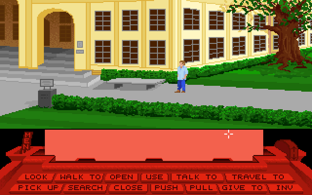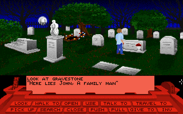Dark Half представляет собой квест. Поскольку игра старая, то и геймплей в ней достаточно олдскульный. Здесь, чтобы заставить героя что-нибудь сделать, нужно выбрать действие из списка глаголов, а затем навести курсор на интересующий объект. Протагонист способен болтать с другими персонажами, ходить, поднимать, давать и применять вещи. Также он может взаимодействовать с окружением. Например: осматривать предметы.