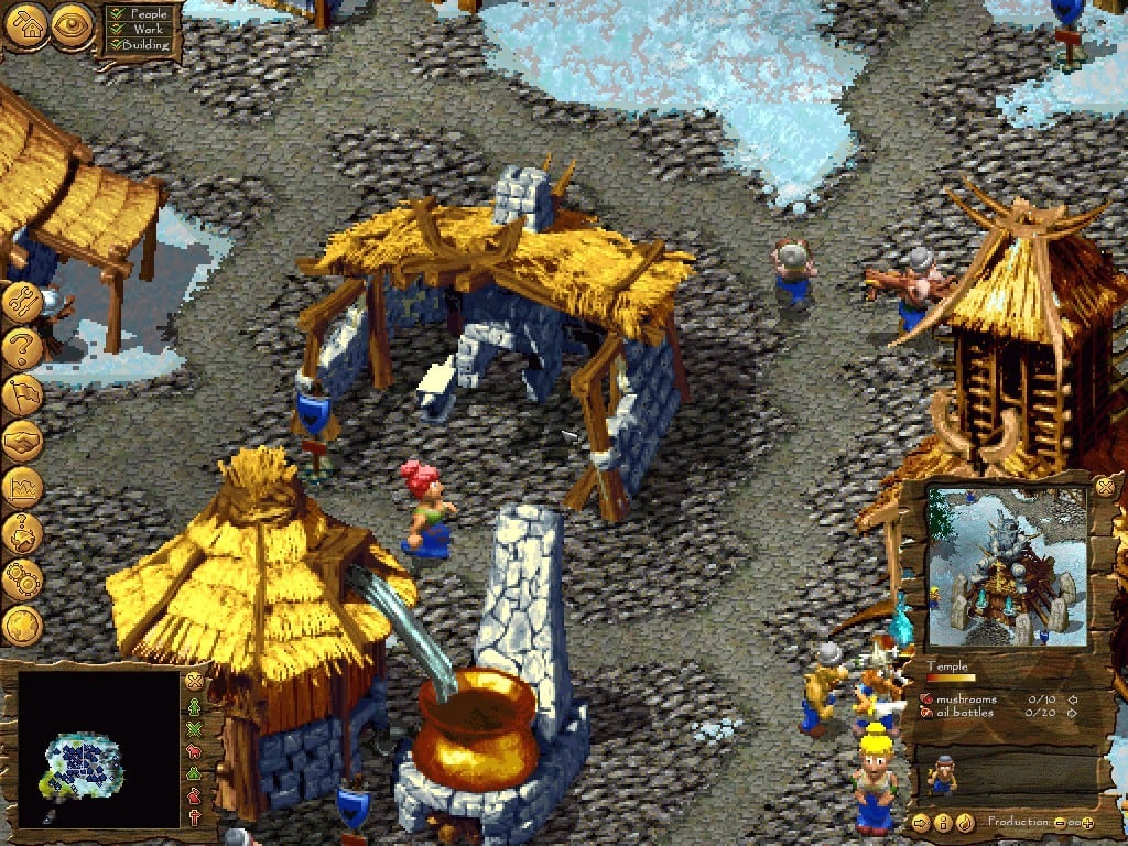 Рост населения зависит от количества заключенных браков. Пользователю разрешают женить мужчин и женщин, а затем выбирать пол будущего ребенка. К слову, детей тут приносит аист. Процесс их взросления проходит довольно быстро. Человечки накапливают опыт, повышают ранги и получают доступ к новым профессиям. Они могут становиться лесниками, строителями, друидами, грибниками, разведчиками, охотниками, рыбаками, фермерами, столярами, пекарями и другими специалистами. Каждый житель нуждается в пище, отдыхе, семье, религии и общении. На эти параметры влияет множество факторов. Например: уставший после работы викинг быстрее восстановит силы, если поспит на удобной кровати, и будет медленнее уставать, если начнет носить обувь. Удовлетворять потребности людей необходимо, иначе они откажутся трудиться или погибнут. Следить за желаниями своих подопечных позволяют специальные индикаторы.