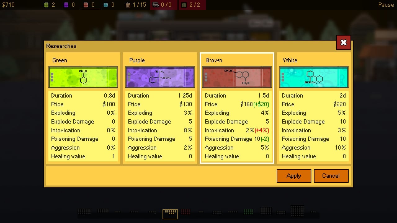 Зарабатывайте внутриигровую валюту, чтобы обеспечить себе возможность приобретать новые механизмы, работников и расширять владения. Подвал можно увеличить в разы, но не за маленькие деньги. Вам понадобиться проводить все операции по изготовлению и продаже товара максимально незаметно от государственных защитников.