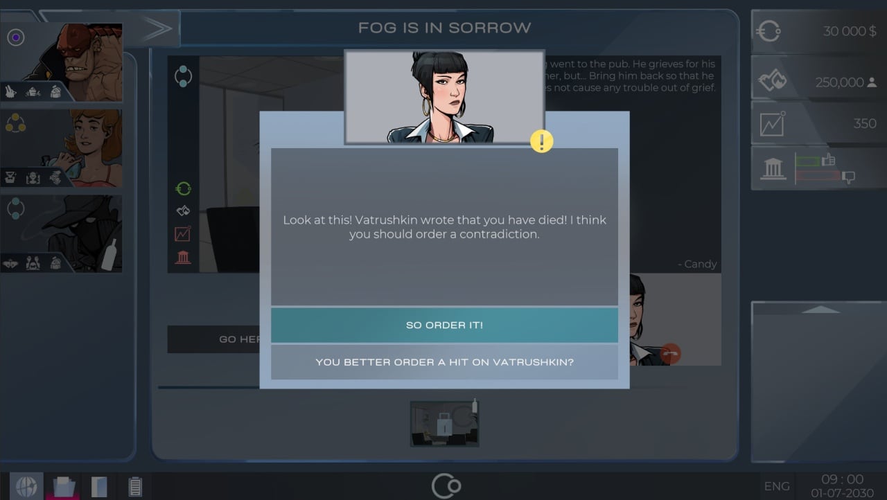 В мире появляется новые конкурирующие агентства и организации, занимающиеся похожим делом. Важно удержать монополию по указыванию услуг городу, чтобы остаться на плаву. В ход будут идти любые доступные методы, помогающие справиться с заговорами недоброжелателей, пытающихся устранить персонажей игрока. Приходиться поднимать и удерживать высокий уровень репутации, чтобы в глазах жителей быть по-прежнему успешным отрядом, способным справится с любыми неприятностями.