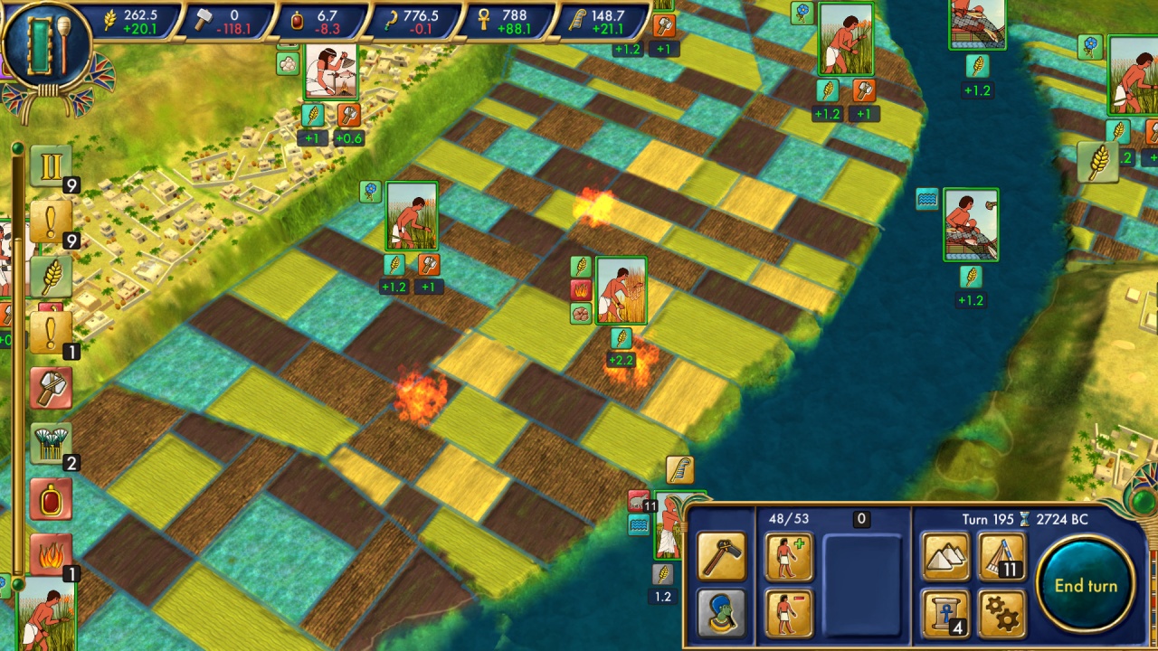 Кроме этого не стоит забывать и о другой стороне управления. Развивайте духовную и политическую составляющую ваших земель. Внедрите религию, добейтесь дипломатических и экономических договоров со своими соседями, не забывайте о внешней и внутренней политике своего государства. В распоряжении игрока история длинной в 1500 лет – приведите Египет к его былому величию, или напишите свою историю этих земель.