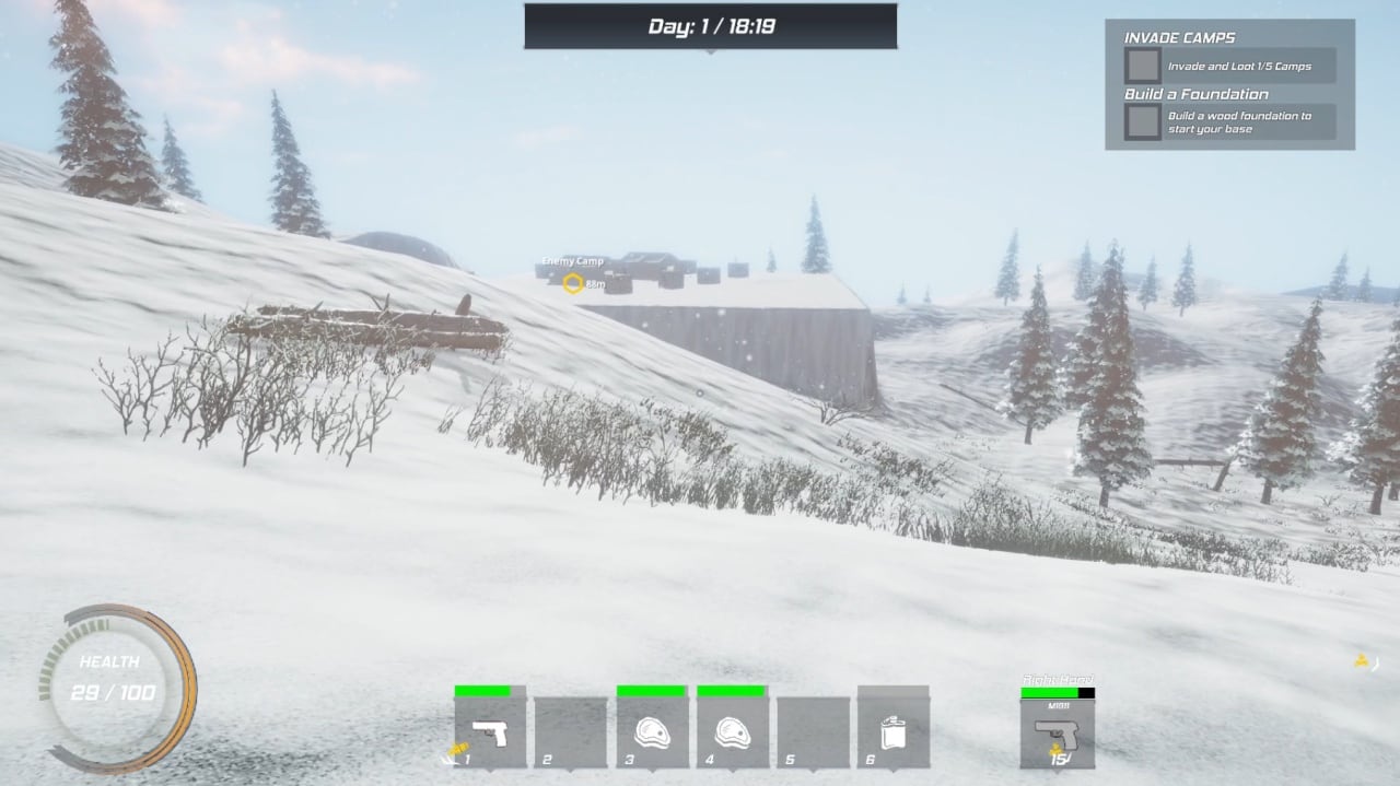 Передвигаться в Winter Warfare: Survival приходится по заснеженной местности, прячась в лесных и горных участках. Пользователь получает возможность прочувствовать атмосферу опасности и самостоятельного выживания в диких условиях природы. Мешать будет стихия и холод, а для пропитания придется охотиться на животных. Приходится заниматься лагерной жизнью и крафтом вспомогательных предметов, помогающих при прохождении. Герой сможет создавать инструменты труда, чтобы обустроить место для ночлега или надежное укрытие, защищающее от снежных бурь.