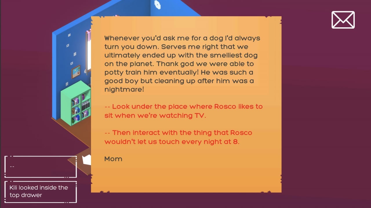 Kili's treasure Полная версия Последняя Дата выхода 20 янв. 2020 Разработчик Siddharth Sivaraman Жанр Инди, Приключения Положительные на основе 11 обзоров в Steam 82% Обновлено 26 января 2025, 09:18 Список изменений Kili's treasure рассказывает грустную историю о потере домашнего любимца. По сюжету в семье умирает собака. Кики получает от мамы письмо, где говорится, что пса Роско отвезли на ферму, а также предлагается сыграть в игру. Женщина организовала для своей дочки забаву по поиску сокровищ и спрятала по всему дому записки с подсказками. Ещё в них содержатся намеки на судьбу четвероногого друга. В Kili's treasure нужно управлять маленькой девочкой с помощью мыши. Она ищет предметы, изучает свои чувства и постепенно подготавливается к правде о трагической потере. Это игра-головоломка с кубической воксельной графикой и изометрическим видом. В ней для исследования доступно жилище, что состоит из 6 комнат. На экране отображается только одно из помещений. Между ними можно передвигаться пешком или через опцию быстрого перемещения. Начинается всё в спальне протагонистки. Постепенно открывается доступ и в другие места. Героиня может взаимодействовать с окружением разными способами. К примеру, если нажать, на кровать, то появится опция из 3 действий: осмотреть её, поискать в самой кровати или заглянуть под неё. Всего в игре 45 интерактивных объектов. Для прохождения тайтла нужно отыскать все 30 подсказок. Сам проект довольно короткий. Его прохождение занимает примерно один или два часа. Скачать торрент Скриншоты Показать больше Видео из игры Скачать Kili's treasure Тип релиза Пиратка (Таблетка: Вшита) Версия (Полная) Последняя Размер 68.5 МБ Интерфейс Английский Озвучка Отсутствует Скачать .torrent торрент файл Скачать БЕЗ торрента прямая ссылка через uTorria Системные требования ОС: 7, 8, 10 (32/64-bit) Процессор: 2.4 GHz Оперативная память: 512 MB Видеокарта: DirectX 9c Место на диске: 300 МБ Расслабляющая, Головоломка, Протагонистка, Расследования, Воксельная графика, Глубокий сюжет, Короткая, Милая, Эмоциональная, Тайна, Point and click