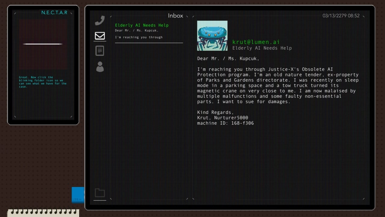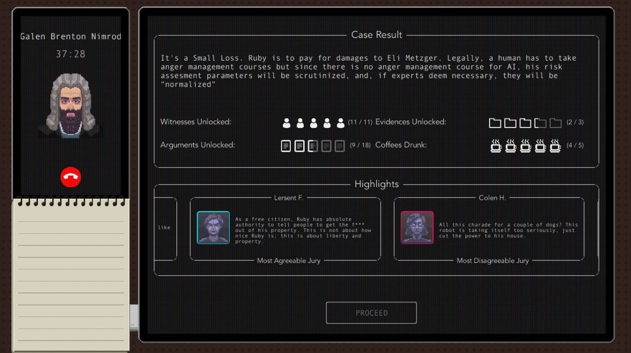 Протагонисту придется собирать информацию и общаться со свидетелями различных происходящих ситуаций, чтобы подготавливать документы для суда. Используя полученные доказательства и приводя верные аргументы, получится отстаивать права людей, пострадавших от вездесущего глаза государства и ставших жертвами жестокой бюрократии. Пользователи получают возможность бороться за права человека в узурпаторском и загнаивающемся обществе.