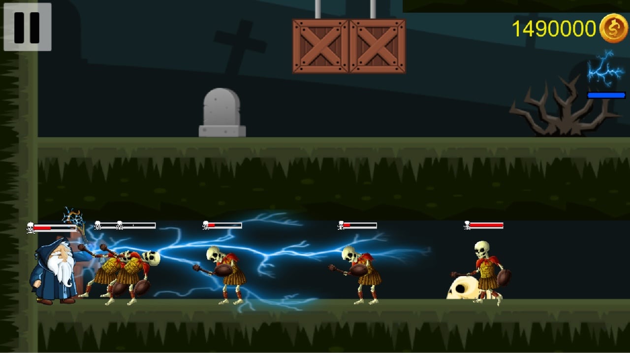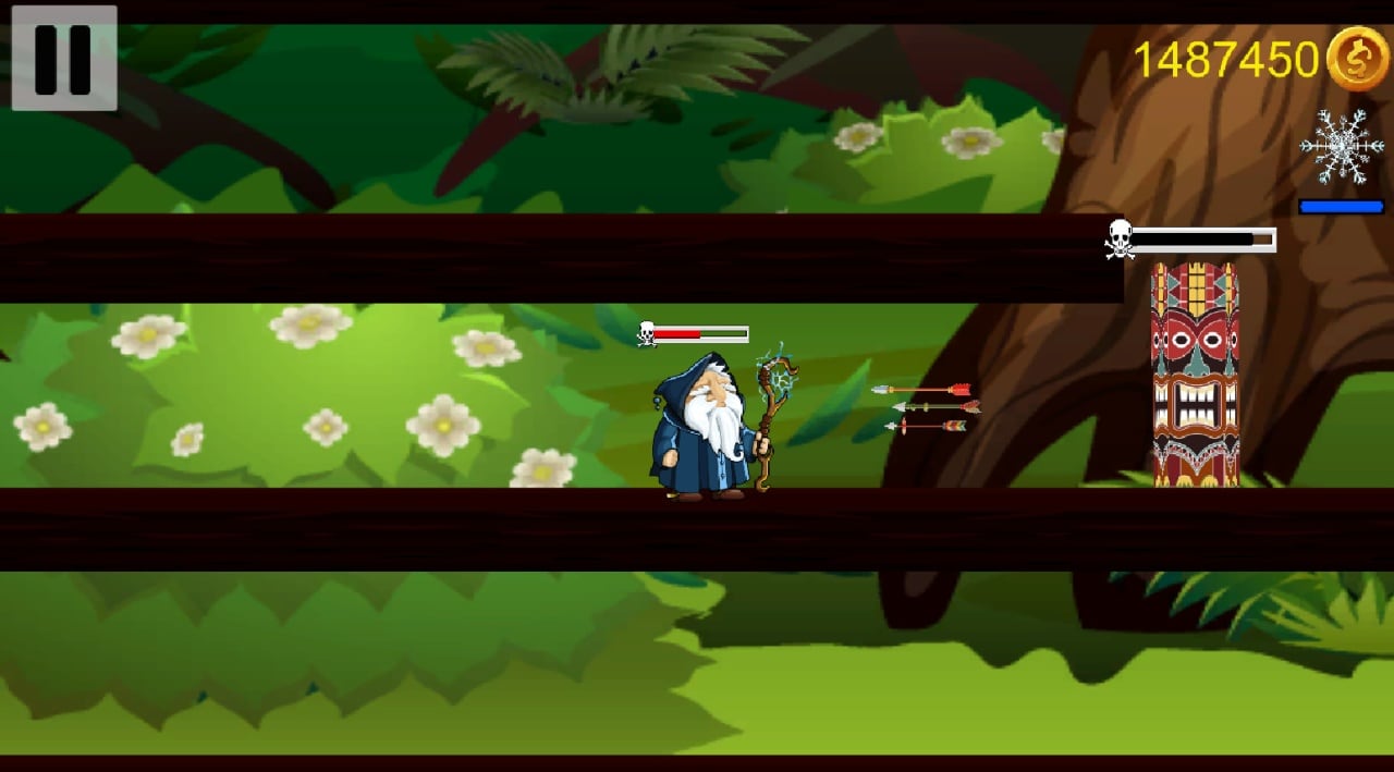 - Собирать бонусные монетки для улучшения заклинаний, чтобы повышать количество и разнообразие доступных атак.