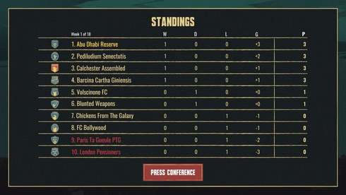 Football Drama RUS v Deluxe Edition Новая версия Полная версия Последняя Дата выхода 18 сен. 2019 Разработчик Open Lab Games & Demigiant Жанр Инди, Стратегии, Приключения, Визуальная новелла, Симуляторы Смешанные на основе 69 обзоров в Steam 59% Обновлено 26 января 2025, 09:32 Список изменений Football Drama позволяет увидеть другую сторону мира футбола. Пользователю предлагается роль менеджера. Рокко Гальяно не повезло, обстоятельства сложились не в его пользу, и мужчине пришлось покинуть этот вид спорта. Однако, спустя несколько лет, спортивный клуб "Кальчестер" попал в затруднительное положение, и нуждался в помощи героя. Это стало вторым шансом в карьере, который получает не каждый. Персонажу придется постараться, чтобы доказать свой профессионализм, привести команду к победе и снова стать востребованным в своем деле. Геймплей в Футбольной драме основан на принятии решений. Есть несколько вариантов пути по которым можно пойти. Среди них коррупция, романтика, наркотики, криминал и другое. При этом, каждый сделанный выбор может изменить исход всех событий. Чемпионат длиться 18 игровых недель. За это время геймеру предстоит полностью разобраться в сложившейся ситуации и найти правильное решение. Главная цель – восстановить репутацию, и проигранный турнир не станет этому помехой. Разработчики предоставляют возможность повторного прохождения. Условия каждого матча генерируются случайным образом, поэтому они неповторимы. Основной игровой процесс, происходит на предложенных картах с действиями, а не на футбольном поле. Результаты игры отображаются в специальных журналах. Скачать торрент Скриншоты Показать больше Видео из игры Скачать Football Drama Тип релиза Пиратка (Таблетка: Вшита) Версия v Deluxe Edition (Полная) Последняя Размер 113.2 МБ Интерфейс Русский Озвучка Отсутствует Скачать .torrent торрент файл Скачать БЕЗ торрента прямая ссылка через uTorria Системные требования ОС: 7, 8, 10 (32/64-bit) Процессор: Intel Core2 Duo T5600 Оперативная память: 2 GB Видеокарта: GeForce Go 7600 Место на диске: 500 МБ Футбол, Глубокий сюжет, Драма, Чёрный юмор, Несколько концовок, Выбери себе приключение, Смешная, Решения с последствиями, Пошаговая, Менеджмент, Пошаговая тактика, Атмосферная, Карточная игра