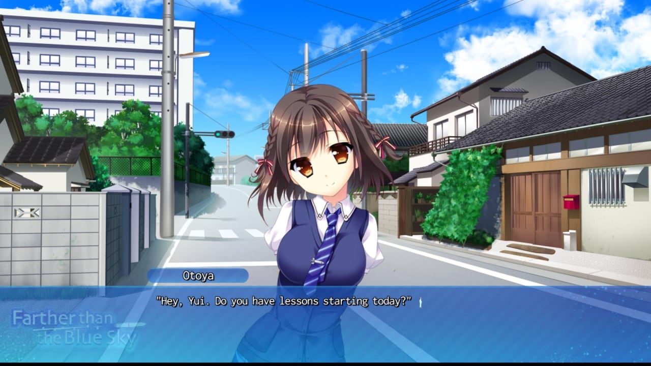 Главной задачей для пользователя в Farther Than the Blue Sky становится направление сюжетной линии повествования, которая будет развиваться нелинейно на протяжении прохождения. Предстоит совершать выборы в определенных моментах, наблюдая за влиянием на происходящие сцены между персонажами. Герои будут активно общаться в кружке, обсуждая разработку уникального ракетостроительного проекта, чтобы получить возможность реализоваться в будущем, устроившись на работу по данной специальности. События игры происходят в уютном японском городке под названием Аманосиме, где расположена академия. Ученики будут знакомиться со студенческим бытом, стараясь воплотить в жизнь собственные проекты. Геймерам придется оказывать влияние на историю и развитие взаимоотношений между персонажами, где центральной фигурой будет выступать дама сердца Бякко, погруженная в работу над проектом.