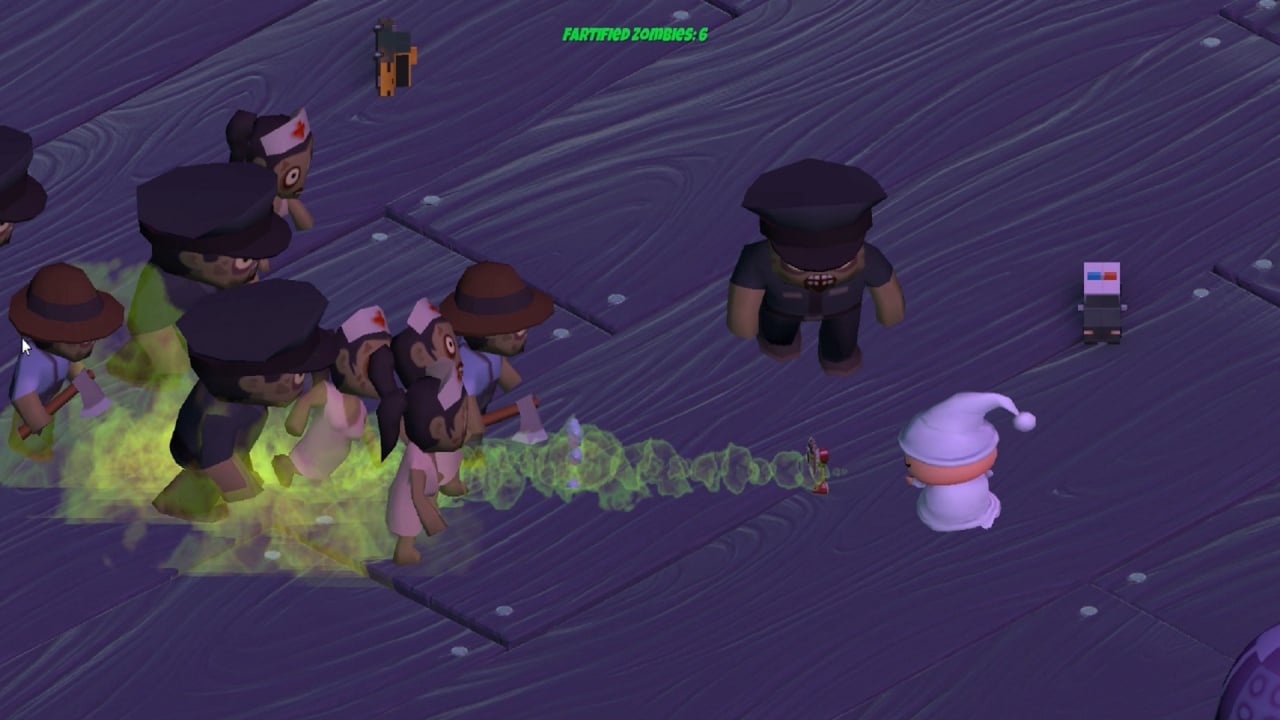 TopDownFarter Полная версия Последняя Дата выхода 24 мая. 2019 Разработчик Shawn Hirsch Жанр Экшены Обновлено 26 января 2025, 09:41 Список изменений В TopDownFarter используется довольно нестандартный подход к уничтожению врагов. Здесь, главному герою Дану предстоит бороться с зомби нетрадиционным способом. Место огнестрела и холодного оружия занимает пердеж. А с учетом того, что парень очень любит этот вид деятельности, его газы действительно ядовиты и могут нанести немало ущерба. Поэтому, ему придется продемонстрировать свой лучший перформанс, чтобы избавиться от мерзких тварей. За происходящим в TopDownFarter можно наблюдать в изометрической проекции. Камера располагается под наклоном, из-за чего обзор слегка ограничен. Суть прохождения довольно проста - геймер убегает от напирающих толп мертвецов, которые безостановочно двигаются в его сторону. Его задача заключается в том, чтобы направлять на них поток газа. Чем габаритнее оказывается тварь, тем сложнее будет вывести её из строя. Например, помимо особей стандартного размера в ход пойдут огромные кролики, панки с битами и безумные фермеры с топорами. Важно помнить о том, что запасы "топлива" ограничены, и время от времени нужно подбирать появляющиеся емкости с газами. У игры нет сюжета, этапов прохождения или концовки. Все обрывается как только персонаж погибает, а рекорд по количеству пораженных юнитов сохраняется в системе. После этого, можно сразу же начать новую попытку или выбрать другую локацию. Скачать торрент Скриншоты Показать больше Видео из игры Скачать TopDownFarter Тип релиза Пиратка (Таблетка: Вшита) Версия (Полная) Последняя Размер 100.4 МБ Интерфейс Английский Озвучка Английская Скачать .torrent торрент файл Скачать БЕЗ торрента прямая ссылка через uTorria Системные требования ОС: Windows 7, 8, 10 Процессор: 2 GHz - Dual Core Оперативная память: 2 ГБ Видеокарта: HD Graphics 4000