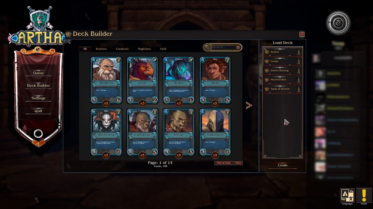 ARTHA RUS Полная версия Последняя Дата выхода 1 мар. 2021 Разработчик Starcube Games Жанр Стратегии, RPG, Инди Обновлено 31 марта 2025, 04:46 Список изменений ARTHA позволяет проверить стратегические умения геймера, когда игрок применяет навыки в онлайн-противостояниях. Есть возможность ознакомиться с основами геймплея в тренировочном режиме, используя для этого искусственный интеллект в качестве противника. Понадобится противостоять вражеским юнитам с помощью карт. В игровом процессе предстоит включить тактику защиту и нападения, ориентируясь на своих персонажей. Необходимо объединять союзников, чтобы комбинировать способности. Потребуется рассчитывать силы оппонента, чтобы видеть его сильные и слабые стороны. Стоит участвовать в соревнованиях, коллекционируя своих героев.Колода разделена на 3 категории. Воины являются главными бойцами, которые смогут наносить больший урон по оппонентам. Относятся к танкам, которые защищают своих союзников от вражеской атаки. Существа способны похвастаться своими волшебными заклинаниями. Они могут восстанавливать здоровье своих собратьев. Также помогают регенерировать свои магические силы. Колдуны пользуются магией, улучшая маны и жизненные единицы.В ARTHA на старте можно будет играть со следующими картами: Avanc – представитель инопланетной расы в женском роде, наносит 1 единицу урона по всем недоброжелателям. Feline – из кошачьих, может обменять карту на другую. Surke – бородатый мужчина, остается в течение 2-х ходов. После чего отправляется на кладбище. Crawfordigo – ущерб равняется количеству оставшегося здоровья. Bigllis – ящер, который создает своих клонов. Gnores – уничтожает сразу несколько вражеских карт. Hadelia – удаляет недруга и отправляет в могилу. Скачать торрент Скриншоты Показать больше Видео из игры Скачать ARTHA Тип релиза Пиратка (Таблетка: Не Требуется) Версия (Полная) Последняя Размер 221.3 МБ Интерфейс Русский Озвучка Русская Скачать .torrent торрент файл Скачать БЕЗ торрента прямая ссылка через uTorria Системные требования ОС: Windows Vista, 7, 8, 10 (64 бита) Процессор: Intel Celeron G1820 | AMD A4-7300 Оперативная память: 2 ГБ Видеокарта: Nvidia GEForce Series | Radeon R6 Место на диске: 3 ГБ Настольная игра, Карточная игра, Пошаговые стратегии, Тактика, Построение колоды, Пошаговые сражения, Стратегии в реальном времени, Тактика в реальном времени, Игры в 2D, Стилизация, Вид сверху, Фэнтези, Магия, Казуальная