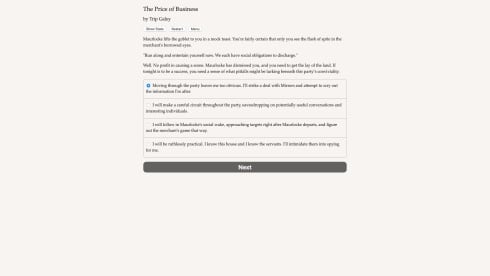 Faerie's Bargain: The Price of Business представляет собой интерактивный рассказ, выполненный в форме текстовой ролевой игры. Пользователи будут читать в форме книги историю о фэнтезийном стимпанк мире, погружающем на территорию альтернативного викторианского Лондона, где находится волшебный рынок. Игроки смогут занять роль торгующего гоблина, продающего чужие воспоминания, желания и секреты. Пользователи будут решать, чем заниматься торговцу, определяя его судьбу. Получится набивать карманы золотом, защищать честь королевы или создавать коварный заговор, чтобы посадить новую марионетку на трон правителя столицы.