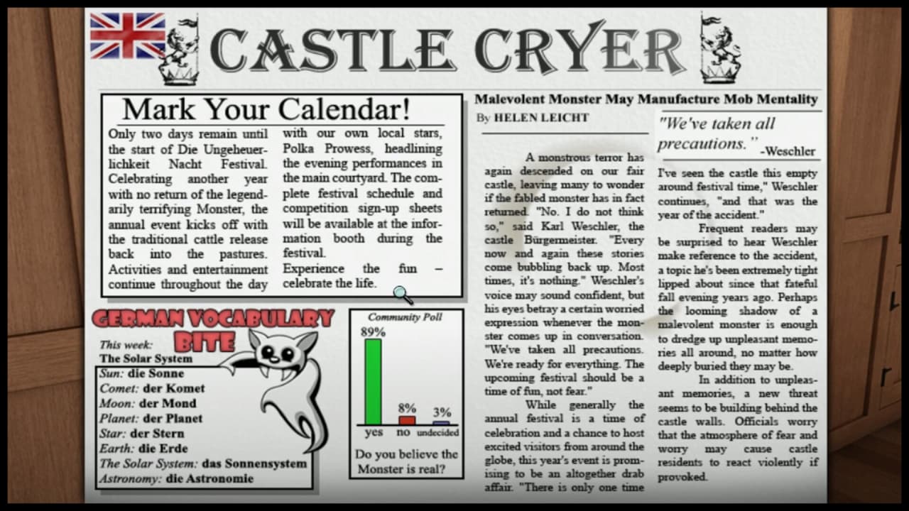 Nancy Drew: The Captive Curse Полная версия Последняя Дата выхода 25 июл. 2011 Разработчик HeR Interactive Жанр Приключения Очень положительные на основе 218 обзоров в Steam 89% Обновлено 26 января 2025, 08:37 Список изменений Nancy Drew: The Captive Curse – это жуткая история с тайнами, смертью за стеной и монстрами внутри замка, где предстоит раскрыть очередную тайну и добраться до истины. Несмотря на мрачность сюжета и атмосферы, глазу приятно видеть яркие и контрастные цвета. Лучики света и важные предметы чудесно выделяются из мрака. Впереди ожидает множество головоломок и мини-игр, одни потребуют внимания к деталям, другие задействуют логику, способны поднять интерес и азарт к их прохождению. В Нэнси Дрю Проклятие пленника игроки в роли детективов отправляются в глуши Германии, в близь поместья Финстер. В его округах обитает страшное чудовище. По местным байкам, создание периодически утаскивает за собой жителей особняка, гостей и порой, мимо проходящих странников. События происходят так долго, что имя первой жертвы уже позабыто, но последнего бедолагу все еще помнят. Все признаки нового происшествия начинают вновь беспокоить людей в округе, словно совсем скоро былой кошмар повториться. Геймерам предстоит изучать локации, расставлять и наблюдать камеры наблюдения, что б контролировать ситуацию и собрать необходимые улики. Изучать секретные комнаты, скрытые проходы, искать зацепки, следовать за ниточками следа, что б добраться до истины. События набирают обороты и все больше кажется, что в делах замешана рука человека. Все это правдивая сказка или криминальная реальность, покажет итог. Главное – не стоять на месте, двигаться, выискивать, оказаться в нужном месте и воочию увидеть следы злодеяния. Скачать торрент Скриншоты Показать больше Видео из игры Скачать Nancy Drew: The Captive Curse Тип релиза Лицензия (Таблетка: Не Требуется) Версия (Полная) Последняя Размер 3.49 ГБ Интерфейс Английский Озвучка Отсутствует Установка: Скачать .torrent торрент файл Скачать БЕЗ торрента прямая ссылка через uTorria Системные требования ОС: Windows XP, Vista, 7, 8, 10 Процессор: 1.5 GHZ Оперативная память: 512 МБ Видеокарта: 64 MB DirectX 9.0 Место на диске: 2 ГБ Point and click, Головоломка, Глубокий сюжет, Казуальная, Детектив, Смешная, Исследования, Отличный саундтрек, Для всей семьи, Классика, Драма, Протагонистка, Тайна, Культовая классика, Атмосферная, По мотивам книги, 90-е