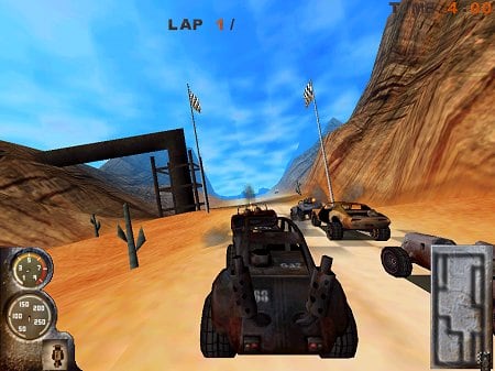 Объектами для взаимодействия выступают различные руины, цистерны, бочки, деревья и т.п. Получая бонусные очки, можно по нажатию клавиши ускорения получить временный прирост скорости. Закись азота восполняется после того, как гонщик собьет различный хлам на треке. При ускорении машина становится менее маневренной. Локациями выступают такие трассы, как подножие вулкана, пляж, ледяное озеро и т.п. Чтобы продвигаться дальше по турнирной лестнице, требуется занимать места в первой тройке. Также могут быть дополнительные условия, например, закончить трассу в отведенное время.