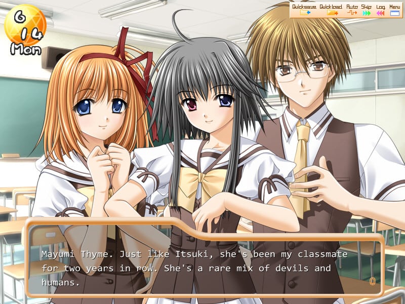 Геймеры будут наблюдать за развитием визуального романа, где придется сталкиваться со сложными моральными решениями. Игроки будут брать под управление Рина, чтобы определиться с какой из девушек лучше завести любовные взаимоотношения. Помимо симпатичной демонессы и доброго ангелочка, в окружении парня присутствует старшеклассница Шигуре Аса и притягательная девчонка Примула.