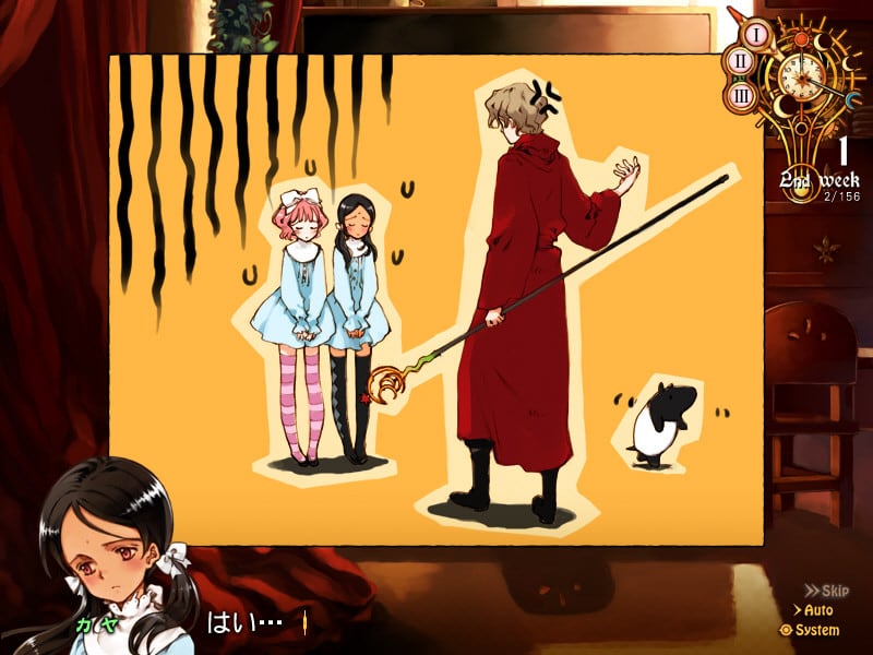 Погружение в Girlish Grimoire Littlewitch Romanesque: Editio Perfecta представляет игрокам возможность окунуться в сказочную атмосферу, показанную в интерактивной новелле. Приходится активно принимать решения от лица главного героя, определяясь с действиями при помощи колеса выборов. Пользователи будут заниматься тренировками двух непослушных девушек по имени Ария Ванклиф и Кайя Ксавьер, что доставляет множество неприятностей пожилому человеку. Старый маг вынужден продумывать правильный подход к занятиям, чтобы успеть вовремя обучить девчонок премудростям плетения колдовства, параллельно занимаясь экспериментами и изучением природы силы, протекающей в крови молодых дам.