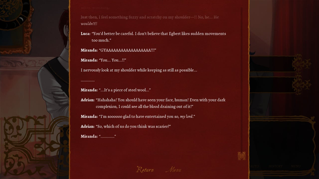 Атмосферные приключения в Нахтигаль за юную девчонку по имени Миранда Наматгире, переносят пользователей в Бельгию. История рассказывает про поездку студентки в новую страну, что желает изучить традиции и провести культурный обмен знаниями с другими учениками. В процессе самостоятельных прогулок по одному из городков, героиня заблудилась и очутилась среди мрачного и пугающего леса. Теряя надежду выбраться из опасной локации, девушка натыкается на большой замок. Входя в поместье, протагонистка сталкивается с двумя вампирами, желающими поближе познакомиться с заблудившейся дамой.