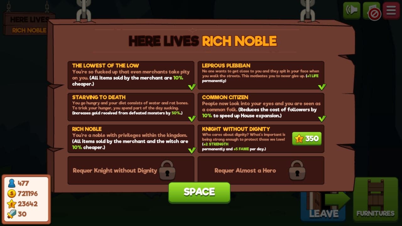 Who Needs a Hero? v 2.2.0 Новая версия Полная версия Последняя Дата выхода 21 янв. 2021 Разработчик Henrique Faitta Chitolina Жанр RPG, Приключения, Инди, Симуляторы Очень положительные на основе 1390 обзоров в Steam 91% Обновлено 26 января 2025, 09:26 Список изменений Who Needs a Hero? - это игра, в которой игрок самостоятельно воспитывает собственного героя. Вначале ему дается просто неизвестный паренек, да еще и голый. За то ближе к концу игры он превращается в самого настоящего героя без страха и упрека, да еще и с прокачанным оружием. Но, а пока потребуется приложить все усилия, чтобы превратить ЭТО в супер-солдата в фентези-масштабах. В Who Needs a Hero? все действия происходят в фентезийном мире, в котором живут в симбиозе множество необычных существ. До сих пор все было хорошо, но внезапно появляется злодей, который приказывает всем чудовищам нападать на обычных людей и грабить поселения. Такое не должно оставаться безнаказанным. Но вокруг, как назло, не оказывается никакого героя, так что приходится создавать его самостоятельно из того, что есть. Протагонисту вначале дается только дубинка, от которой мало пользы. В самом начале игры у парня нет даже одежды, затем, он получает плащ и трусы, а потом уже становится похожим на настоящего рыцаря. Чтобы зарабатывать себе деньги и одежду, ему придется здорово попотеть, убивая местных чудищ. Среди них будут как обычные враги, так и боссы, с которыми можно справиться только после апгрейда. При этом игровой процесс подразумевает пошаговое движение. Главная задача - остаться в живых и помочь мирным жителям избавиться от зла, угрожающего их привычному укладу жизни. Скачать торрент Скриншоты Показать больше Видео из игры Скачать Who Needs a Hero? Тип релиза Пиратка (Таблетка: Не требуется) Версия v 2.2.0 (Полная) Последняя Размер 87.93 МБ Интерфейс Английский Озвучка Отсутствует Скачать .torrent торрент файл Скачать БЕЗ торрента прямая ссылка через uTorria Системные требования ОС: Windows Vista, 7, 8, 10 Процессор: Intel Pentium 4 2.0 GHz Оперативная память: 512 МБ Видеокарта: 512 МБ Место на диске: 500 МБ Решения с последствиями, Казуальная, Средневековье, Настольная игра, Кастомизация персонажа, Приключенческий экшен, Игры в 2D, Милая, Смешная, Фэнтези, Юмор, Мультфильмы, Управление ресурсами, Мультипликация