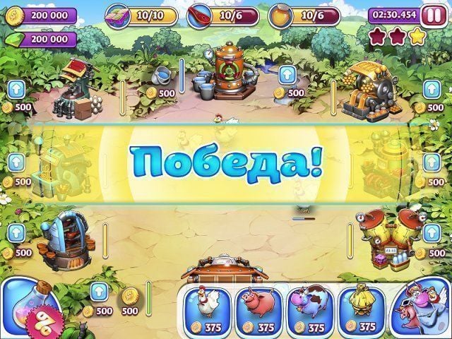 Веселая ферма: Остров безумного медведя Дата выхода 11 ноя. 2015 Разработчик Alawar Жанр Стратегии, Аркады Торрент ожидается Добавьте в избранное, чтобы следить Веселая ферма: Остров безумного медведя – симулятор сельскохозяйственного дела, где игрок вновь перемещается за пределы города для заработка денег. Прохождение предлагает завершение уровней, на каждом из них установлены определенные цели. Пользователю необходимо проходить миссии за минимальное количество времени, чтобы зарабатывать звезда, требующиеся для открытия следующих локаций. На старте игрового процесса представлены обучающие миссии даже для тех, кто еще не знаком с франшизой. В дальнейшем сложность постепенно повышается и требуется быстро реагировать на происходящее. Также квесты варьируются в зависимости от того, как строения и животные разблокированы у геймера. По мере продвижения открывается доступ к новым производственным зданиям, позволяющим создавать более сложную продукцию из добытых материалов. После завершения 20-го уровня юзер открывает Фермерский турнир, где игроки соревнуются между собой за награды. На ферме появляются препятствия, как агрессивные звери, которых потребуется устранять с территории, иначе они заставят потерять полезных животных. У геймера имеются улучшения, действующие на протяжении всего дальнейшего игрового процесса. Апгрейды помогут быстрее добывать продукты, легче побеждать противников или быстрее зарабатывать деньги. Присутствуют бонусные уровни, открывающие при наличии достаточного количества звезд. Скачать торрент Скриншоты Видео из игры Скачать БЕЗ торрента прямая ссылка через uTorria Системные требования ОС: Windows XP, Vista, 7, 8, 10 Процессор: 1 ГГц Оперативная память: 1 ГБ Видеокарта: Совместимая с DirectX 9.0 Тайм-менеджмент, Сельское хозяйство