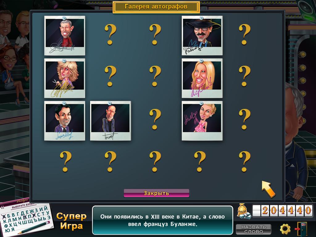 Поле чудес (игра) RUS v 1.0.03 Новая версия Полная версия Последняя Дата выхода 10 мая. 2012 Разработчик HeroCraft Жанр Аркады Обновлено 26 января 2025, 10:27 Список изменений Поле чудес (игра) создана по мотивам популярной телепередачи. Как и в оригинальной версии проекта, участнику предстоит угадывать слова, зарабатывая баллы и выигрывая призы. Игроки по очереди вращают барабан, имеющих 16 зон, а они выдают от 5 до 25 баллов за один ход. Присутствуют и бонусные сектора, удваивающие очки или дающие другие награды. Слово, которое необходимо отгадать, открывается по мере того, как участники называют правильные составные буквы. Если один из пользователей понимает, что это за слово, то может сразу отгадать его. Как в телевизионной программе, на барабане существует сектор из, позволяющий продолжить игру, назвав букву или закончить сессию. Имеется функция "плюс", открывающая заблокированную букву от слова. В каждом матче присутствует ведущий, похожий на Леонида Якубовича, который помогает вести игру и говорить, какое событие сейчас происходит. В одиночном режиме геймер становится третьим участником и каждый матч начинается с его хода. Противники представлены в виде старых советских мультфильмов, как Карлсон или Винни-Пух. Побеждает тот, кто первый отгадает все буквы или целиком назовет слово. Ведущий на задает вопросов, а также озвучивает дальнейшие действия в сессии или просит выполнить определенное действие, относящееся к правилам. Скачать торрент Скриншоты Показать больше Видео из игры Скачать Поле чудес (игра) Тип релиза Лицензия (Таблетка: Не Требуется) Версия v 1.0.03 (Полная) Последняя Размер 76 МБ Интерфейс Русский Озвучка Русская Установка: Скачать .torrent торрент файл Скачать БЕЗ торрента прямая ссылка через uTorria Системные требования ОС: Windows XP, Vista, 7, 8, 10 Процессор: 1,5 GHz+ Оперативная память: 1 ГБ Видеокарта: 128 МБ Место на диске: 85 МБ Психологическая