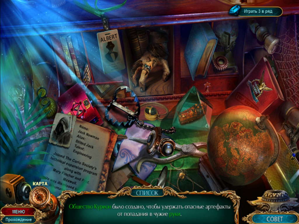 The Curio Society 3 The Thief of Life – это финальная часть интригующего мистического квеста. И, чтобы понять его сюжет игрок должен быть ознакомлен с предыдущими историями, ведь там раскрываются все особенности игрового общества, а также его значение для героини. Как и ранее, пользователю предстоит искать предметы, решать головоломки и добывать улики, чтобы оставить зло.