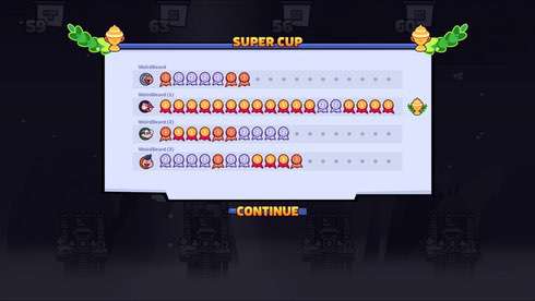 Доступны также две дополнительные вкладки: "Испытание" и "Без конца". В первой игрок учится основам геймплея, а второй подбирает участников по рангу. Игровой процесс сосредоточен в первую очередь на том, чтобы передать соревновательный дух и создать позитивное настроение.