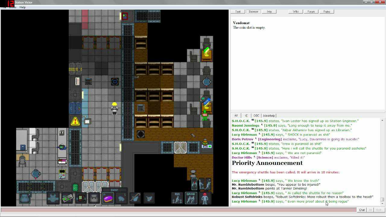 Space Station 13 - многопользовательская песочница, позволяющая стать одним из работников космической станции. Потребуется искать ресурсы и выживать. Необходимо поддерживать работоспособность станции и пытаться всячески предотвратить саботаж. События развиваются в системе Тау Кита. Корпорация NanoTrasen пытается добыть специальный минерал под названием Плазма.
