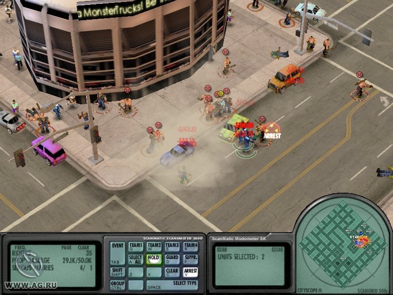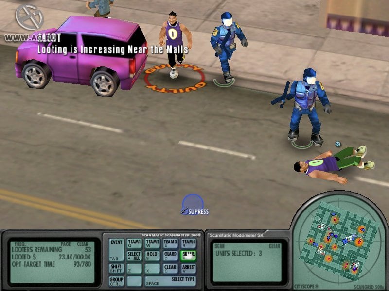 В Риот Полис все почти как в жизни. Если правоохранители первыми полезут на сначала мирных фанатов, то ничем хорошим это не обернется, и их попросту обвинят в жестоком обращении с людьми, а после начнут травить. Поэтому пока все ограничивается простыми возмущениями и нецензурной бранью, пользователь вынужден оставаться наблюдателем. Лишь после того как демонстрация начнет нарушать закон, начнется настоящее сражение в котором нужно составлять стратегию, чтобы нанести городу меньше ущерба и избежать жертв.