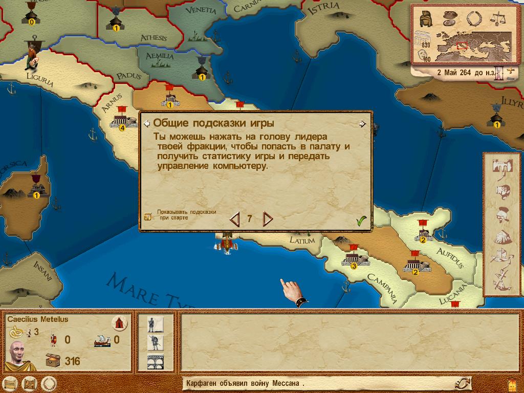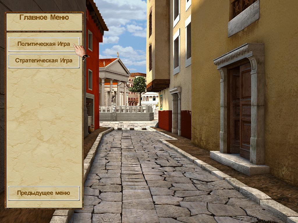 Геймеры выбирают перед прохождением сюжетного сценария или одиночной игры желаемую фракцию и участвуют в глобальной пошаговой стратегии, где предстоит совершать продуманные ходы и стараться привести свою партию к победе и процветанию. Придется участвовать в выборах, посещать форумы, сенаты и прочие места, где получится находить полезные связи или договариваться о различных махинациях со сторонниками других партий. Выйдет посетить бани, базилику, таверну, банк или храм Весты.